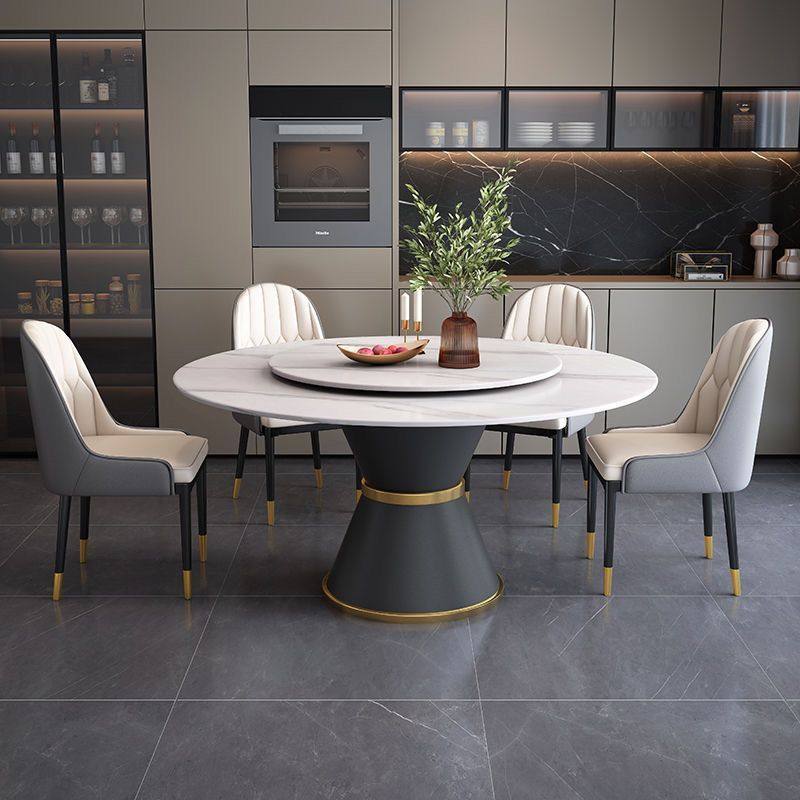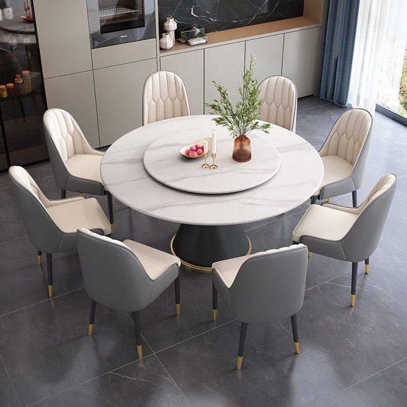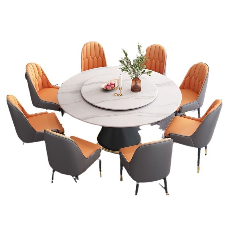 意式岩板餐桌椅组合现代简约吃饭桌子轻奢大理石家用圆形桌带转盘