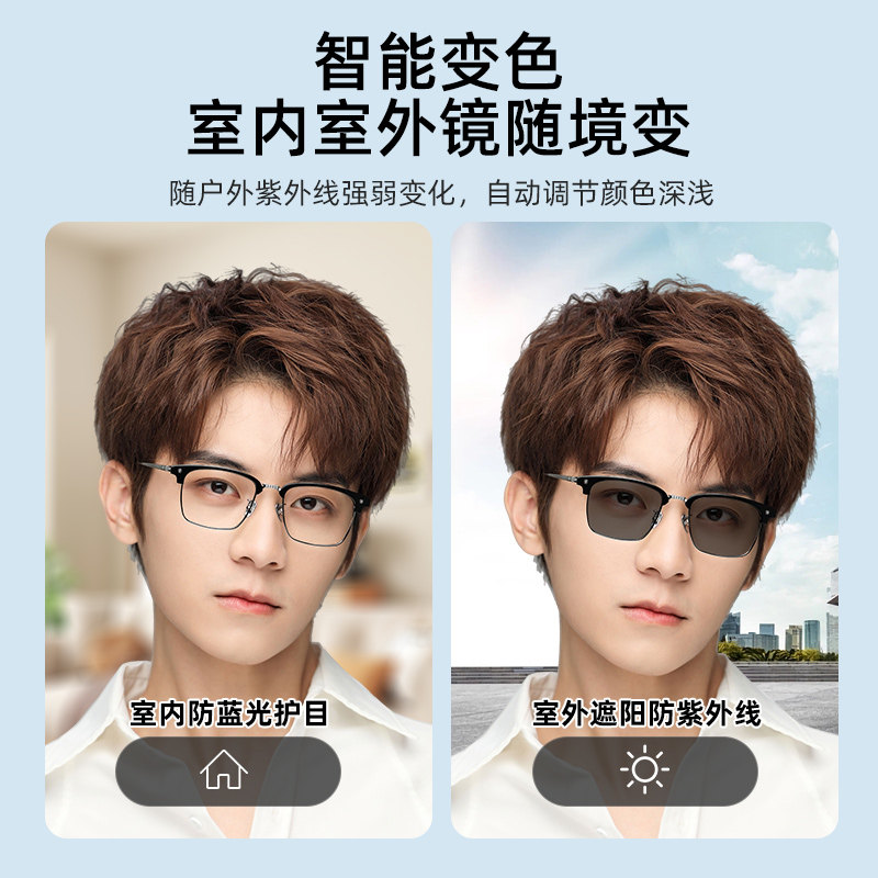 万新镜片防蓝光变色眼镜近视自动感光变灰色配镜树脂有度数男款女