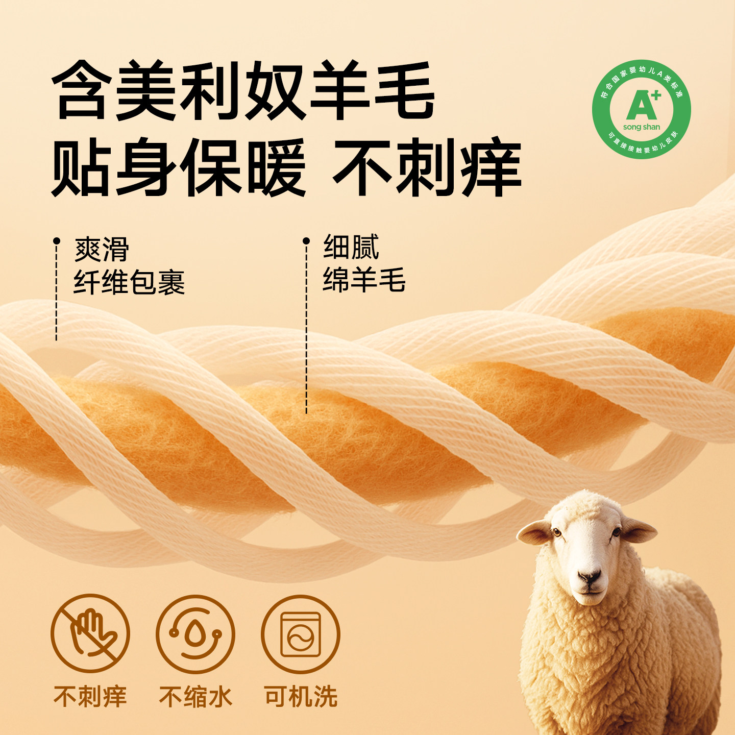 含绵羊毛保暖裤 双面磨绒工艺 加高腰护肚子
