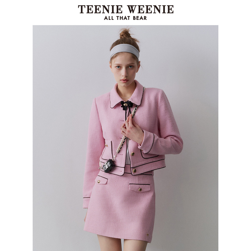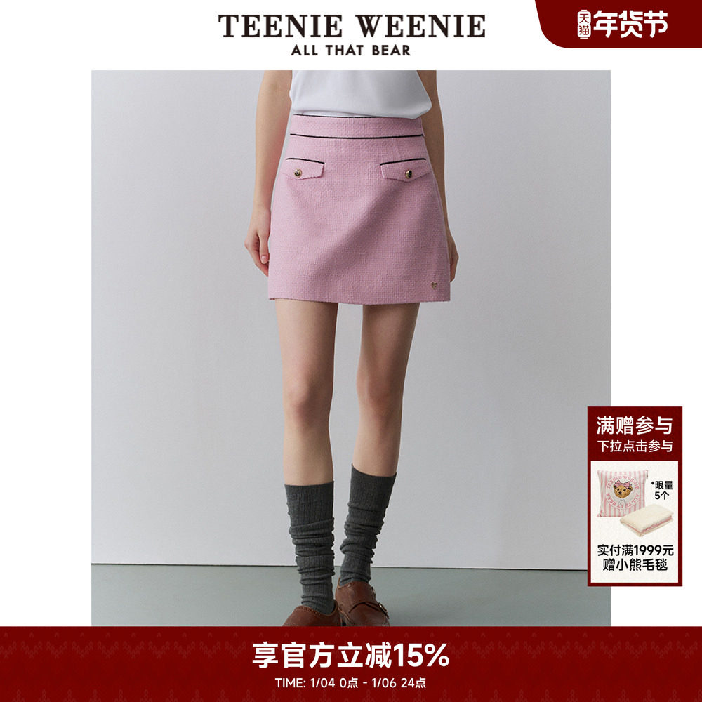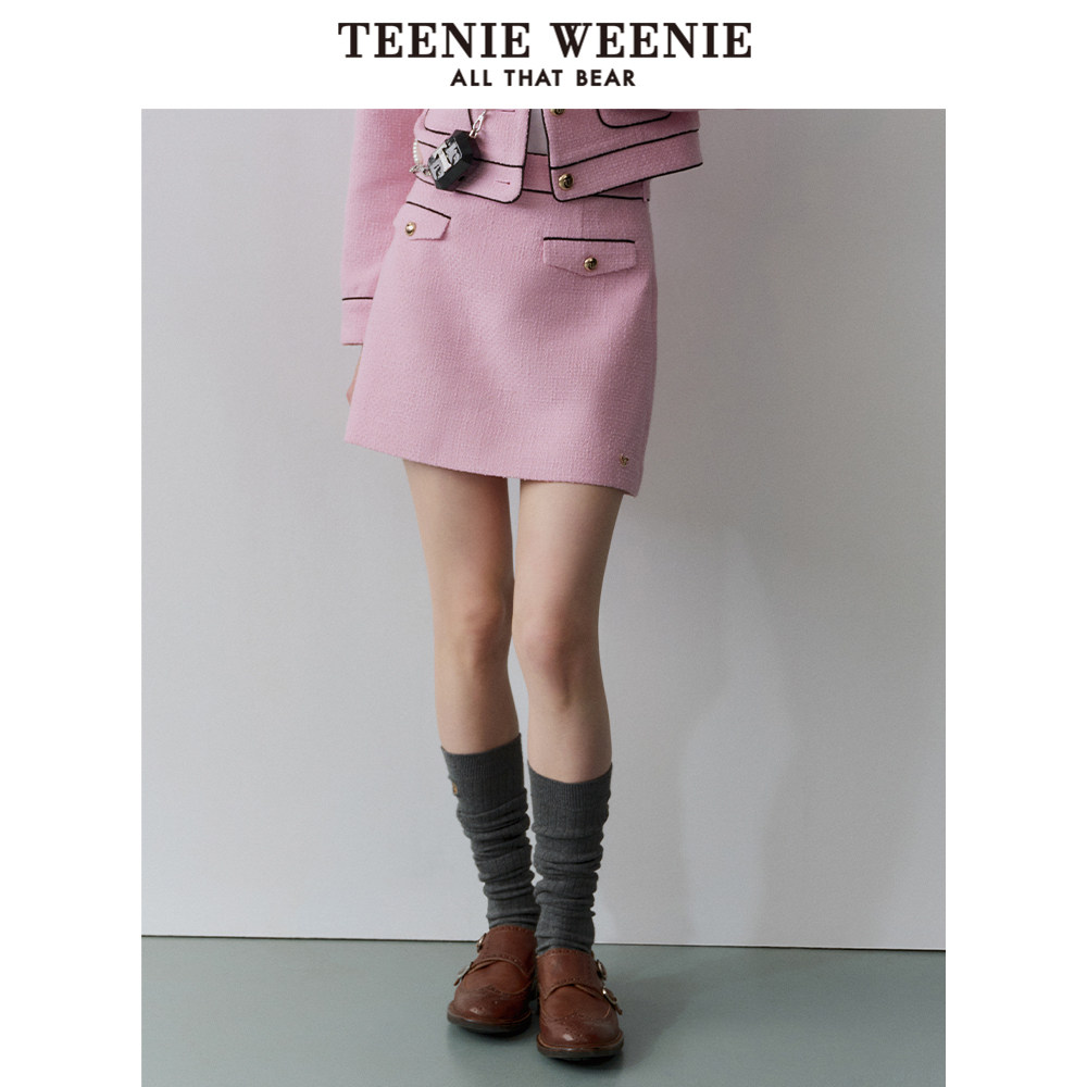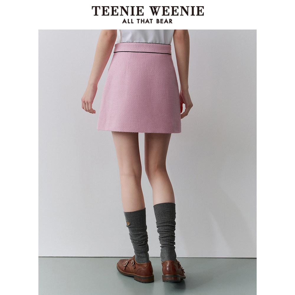 TeenieWeenie小熊奥莱秋季法式小香风包臀短裙粉色半身裙
