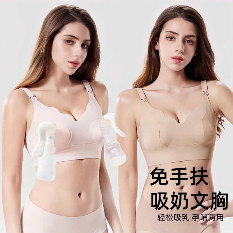 哺乳内衣免手扶吸奶无痕聚拢防下垂孕期哺乳期孕妇胸罩两用兔耳