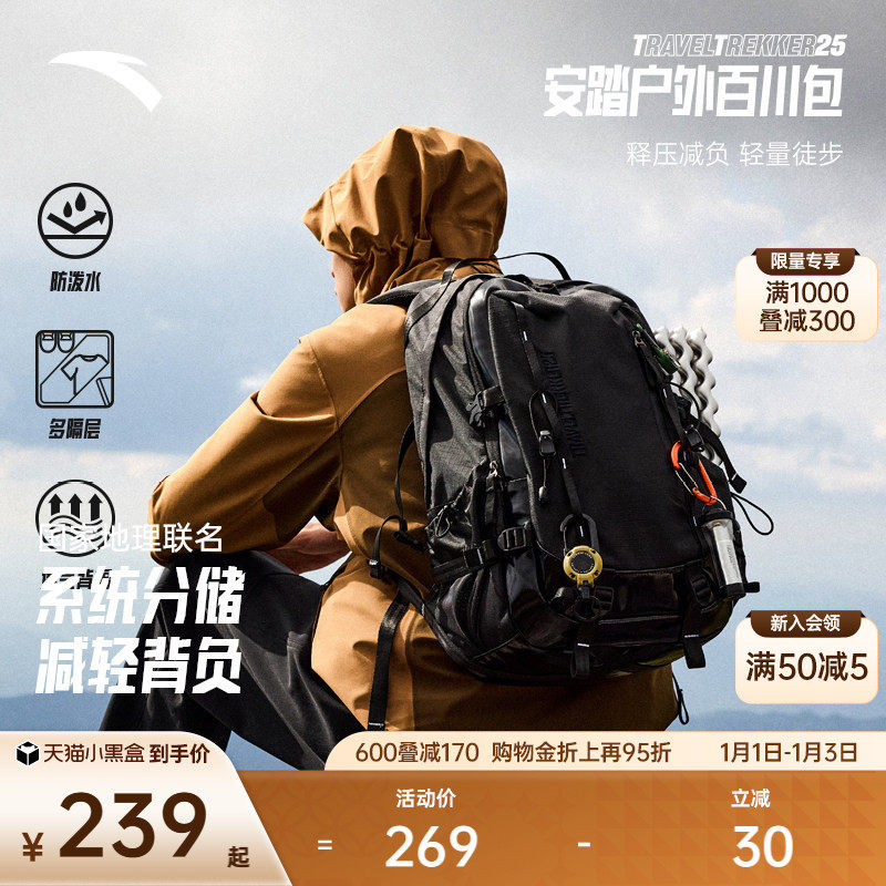 安踏×国家地理丨专业户外包百川包减负背包大容量徒步旅行登山包