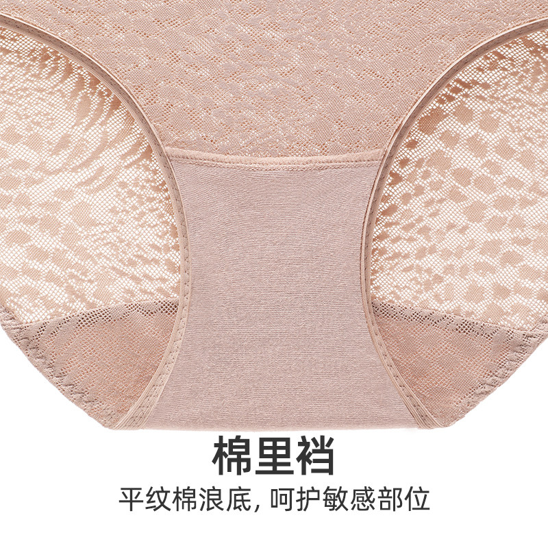 【3件包】爱慕内裤女花的藤蔓棉质底裆性感蕾丝中腰平角裤