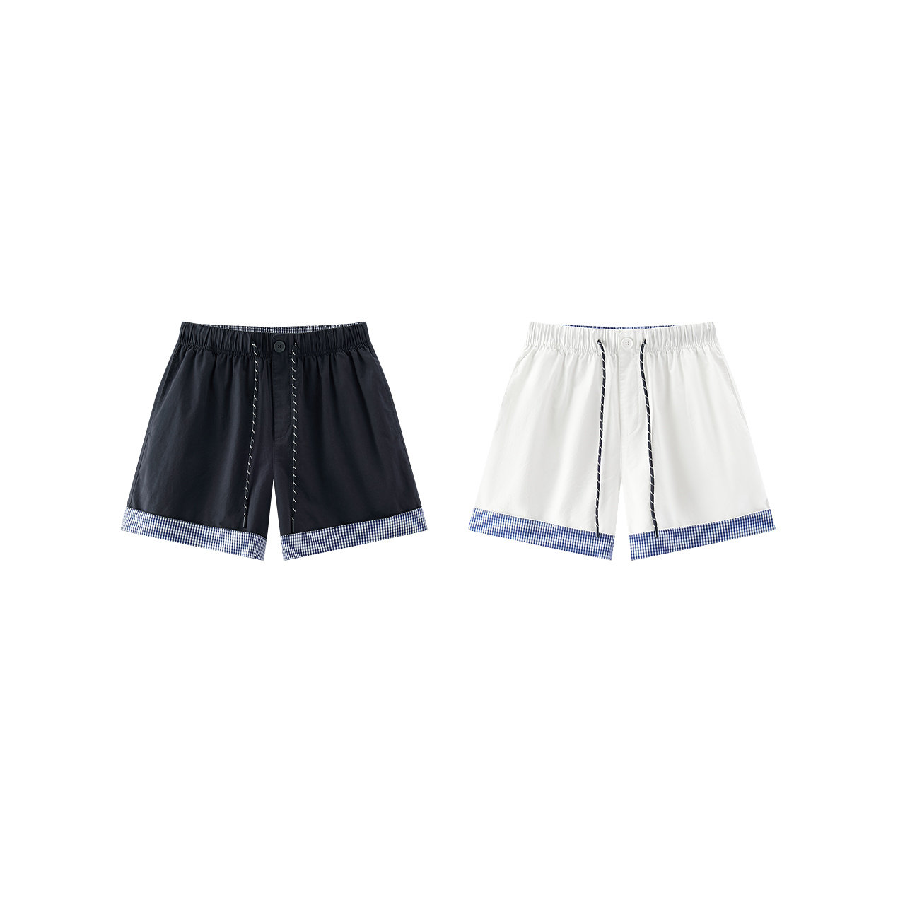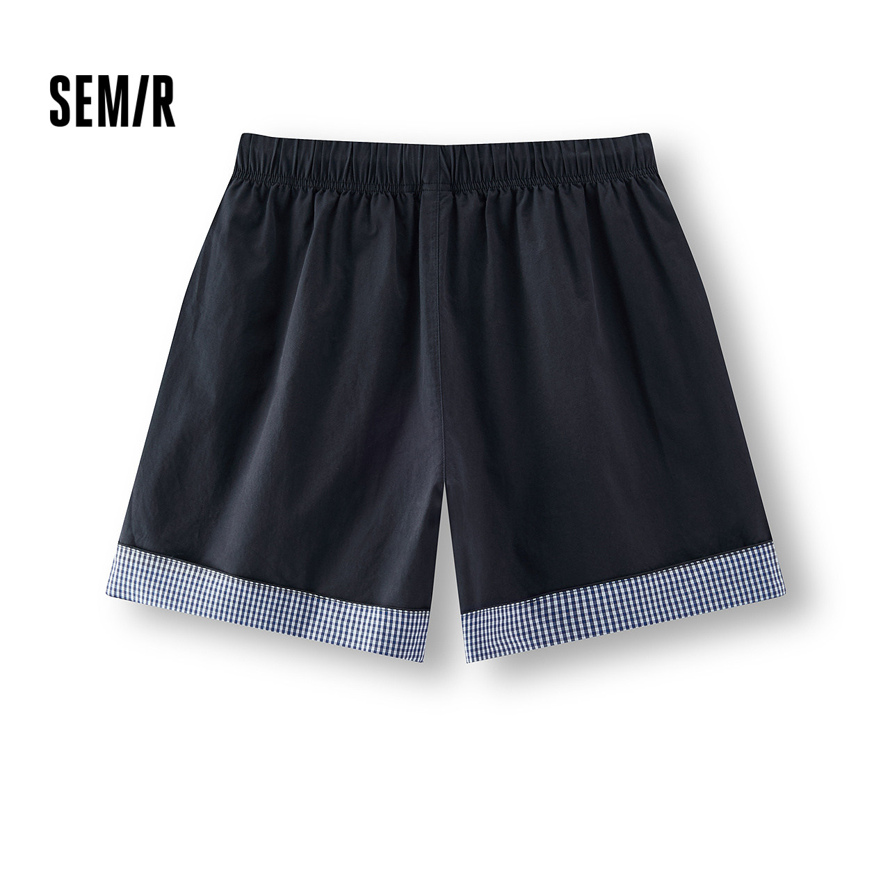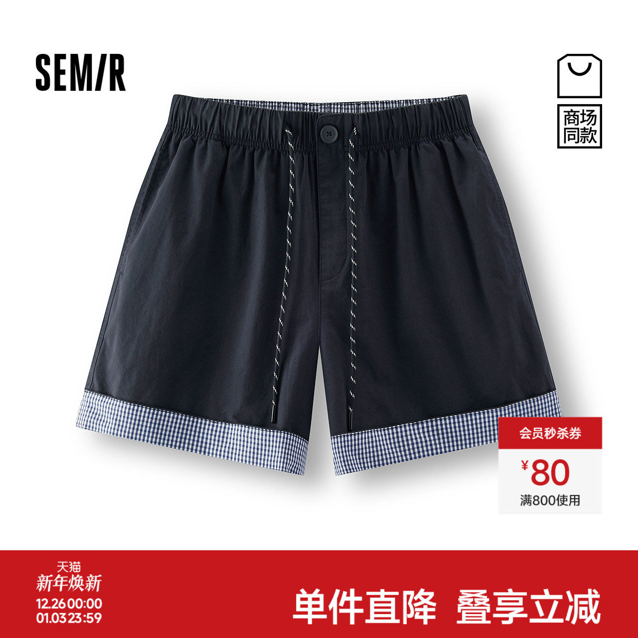 [商场同款]森马休闲裤女拼接格纹宽松短裤夏季2025新款高腰A字裤