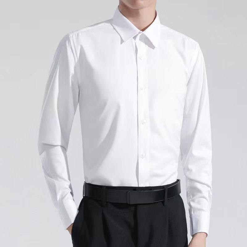 长袖衬衫男商务正装修身职业纯色衬衣春秋季休闲免烫抗皱打底寸衣