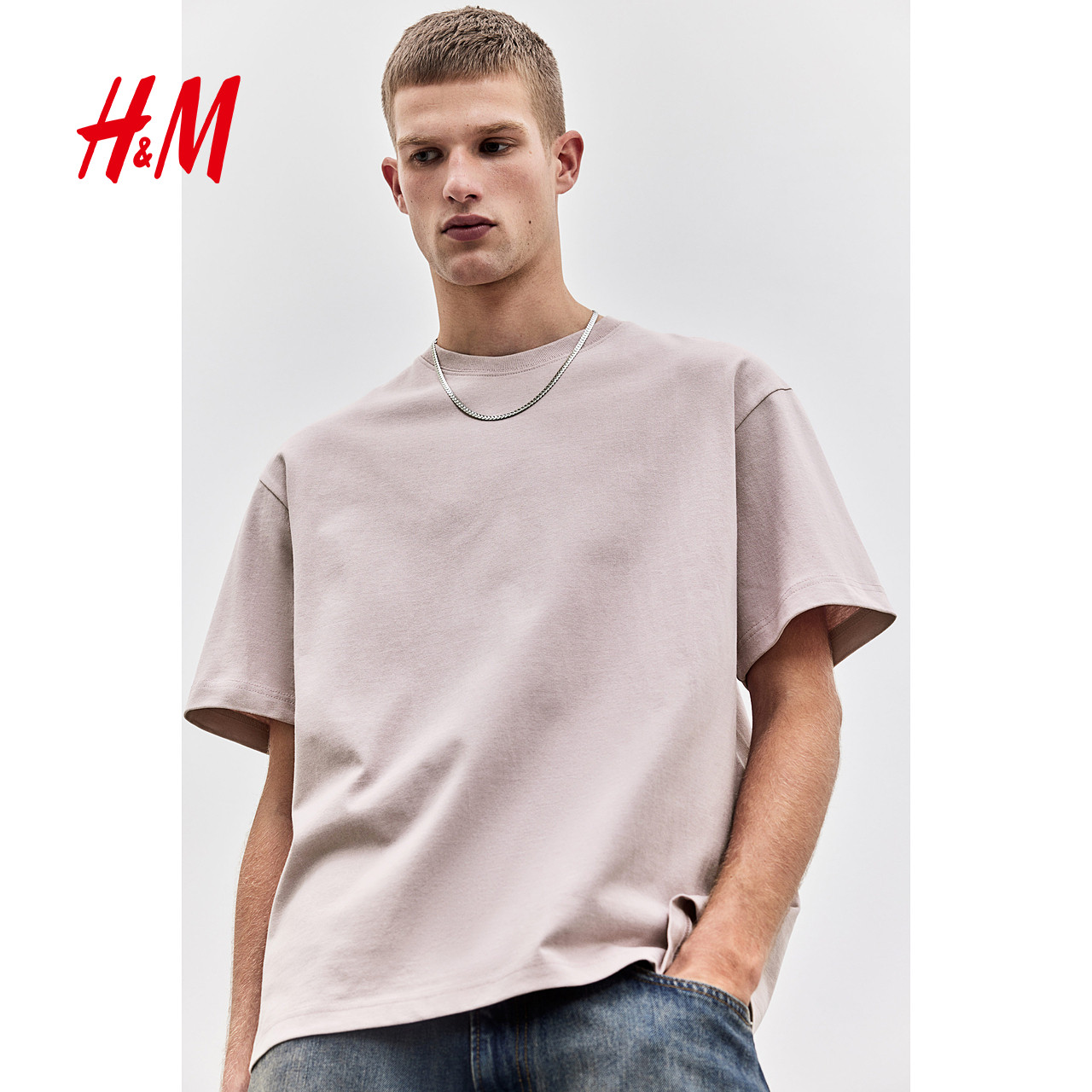 HM男装女装T恤冬季重磅内搭简约气质打底衫休闲短袖上衣0608945