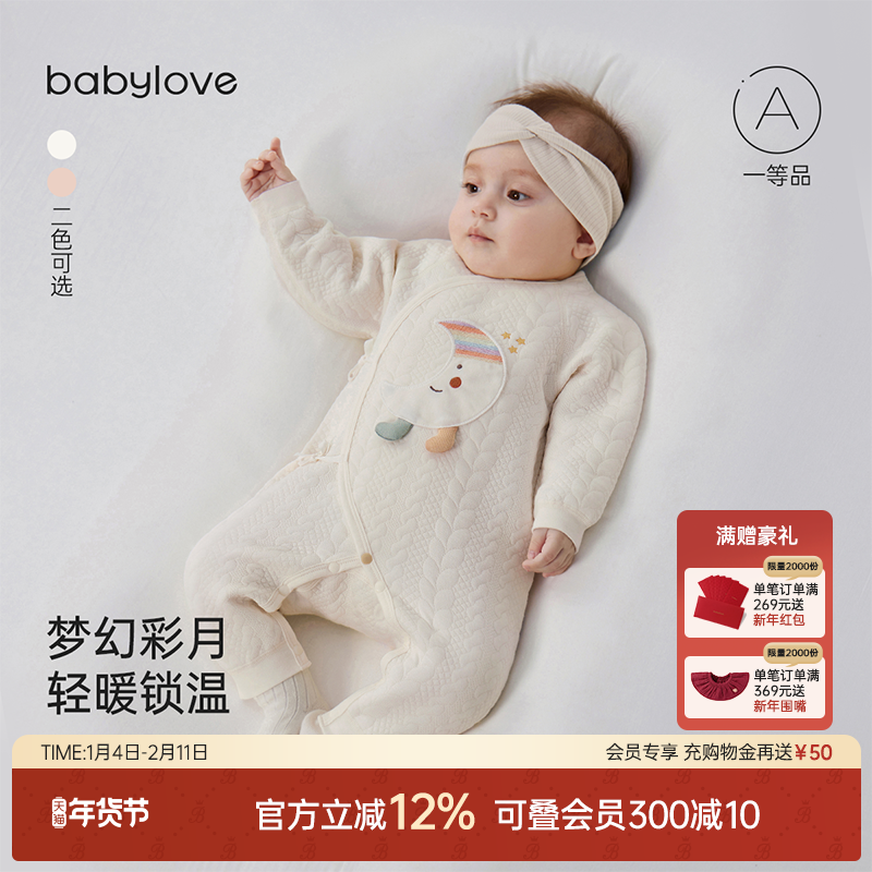 babylove新生儿保暖连体衣秋冬薄夹棉哈衣初生宝宝加厚婴儿衣服