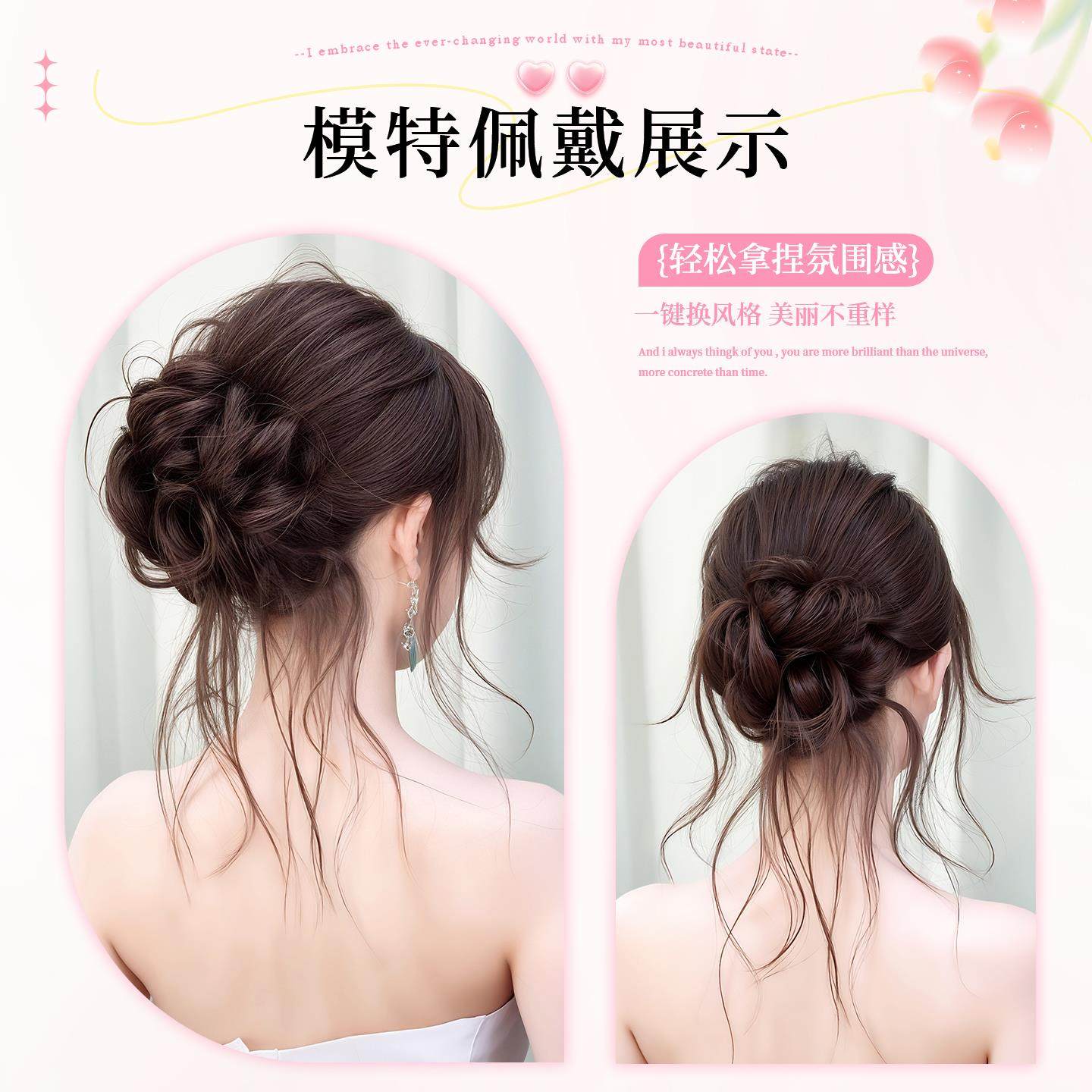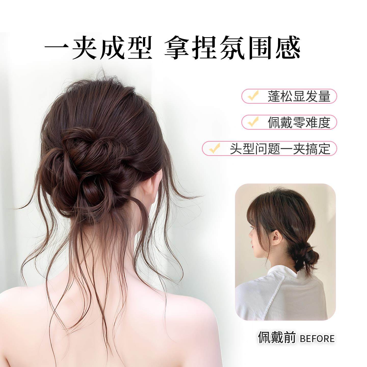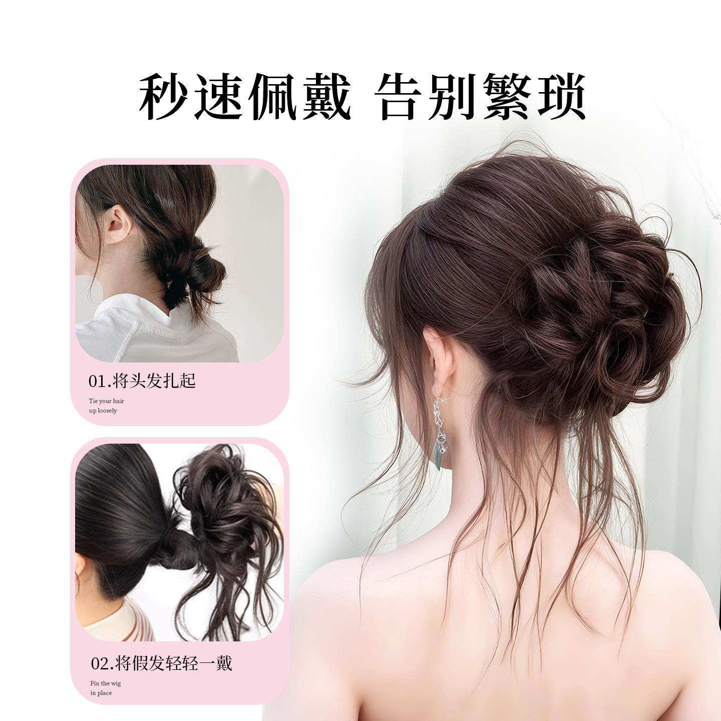 低扎丸子头假发鸡毛头抓夹盘发发包慵懒感造型头饰自然蓬松后脑勺