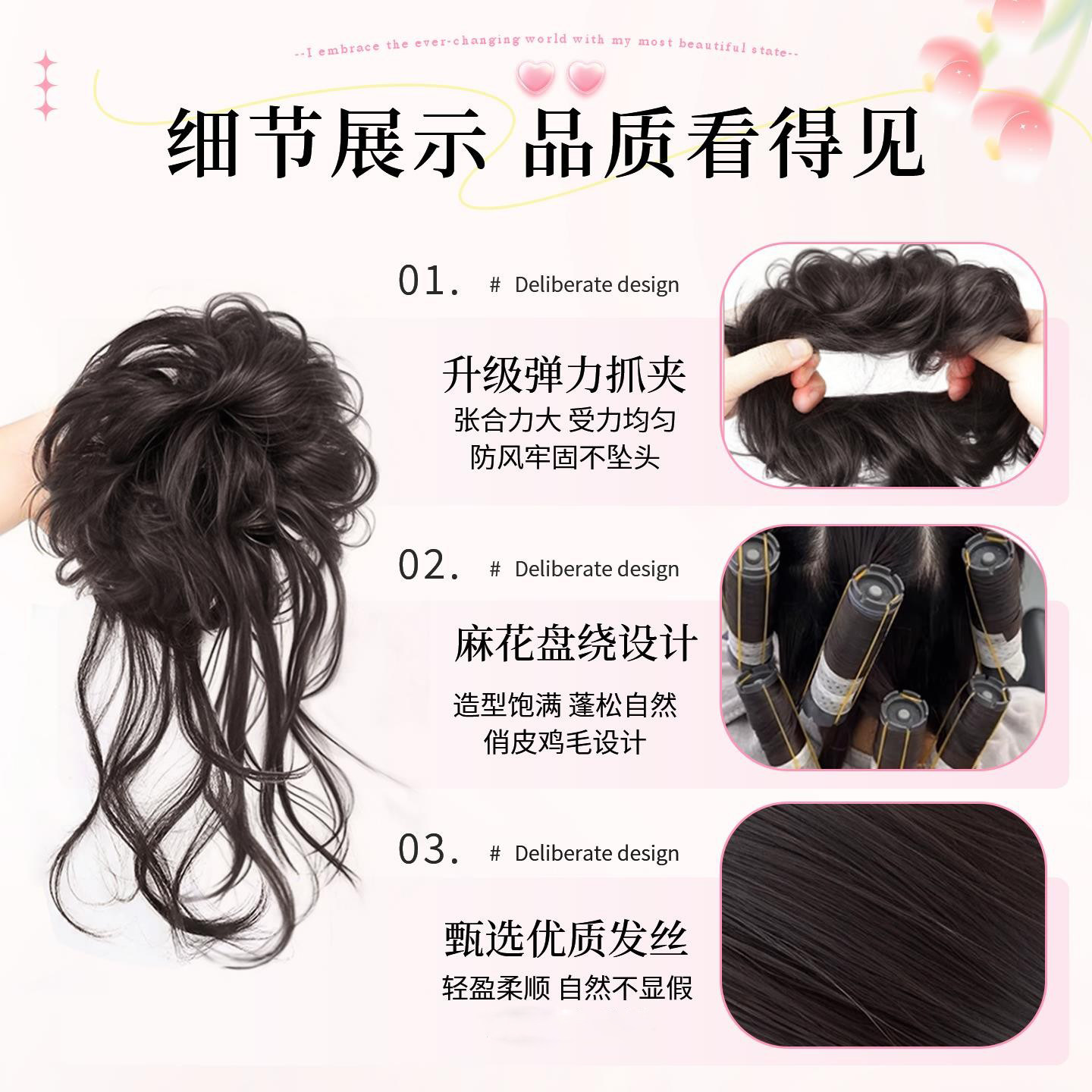 龙须丸子头假发发圈仿真发花苞头低扎盘发懒人神器假发包蓬松流苏