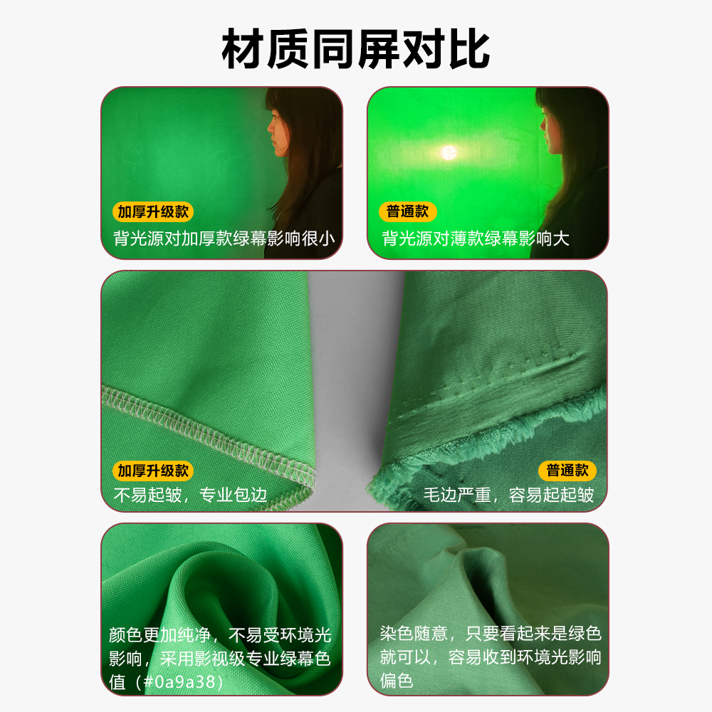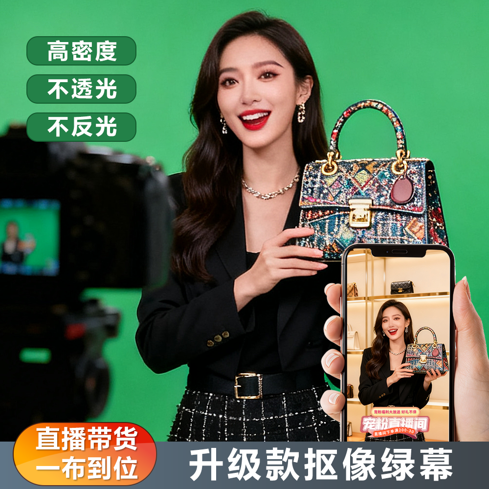直播绿幕背景便携式绿布背景布加厚绿幕抠像布直播间绿色背景墙抠图架地拉幕布龙门架直播间绿幕不反光加厚