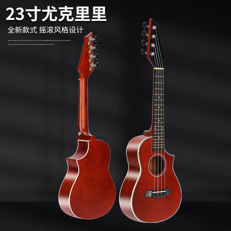 尤克里里23寸桃花芯木小四弦缺角云杉木小吉他电吉他头乐器木吉他