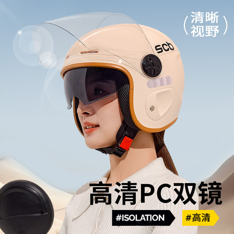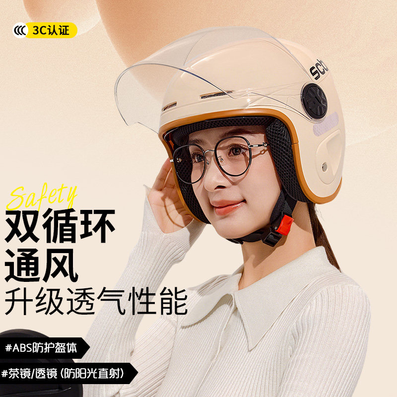 3c认证电动摩托车头盔男女士冬季保暖半盔电瓶四季双镜防晒安全帽