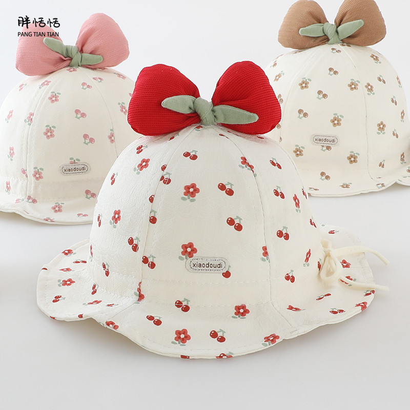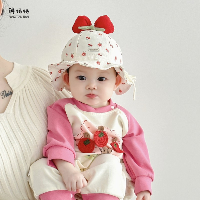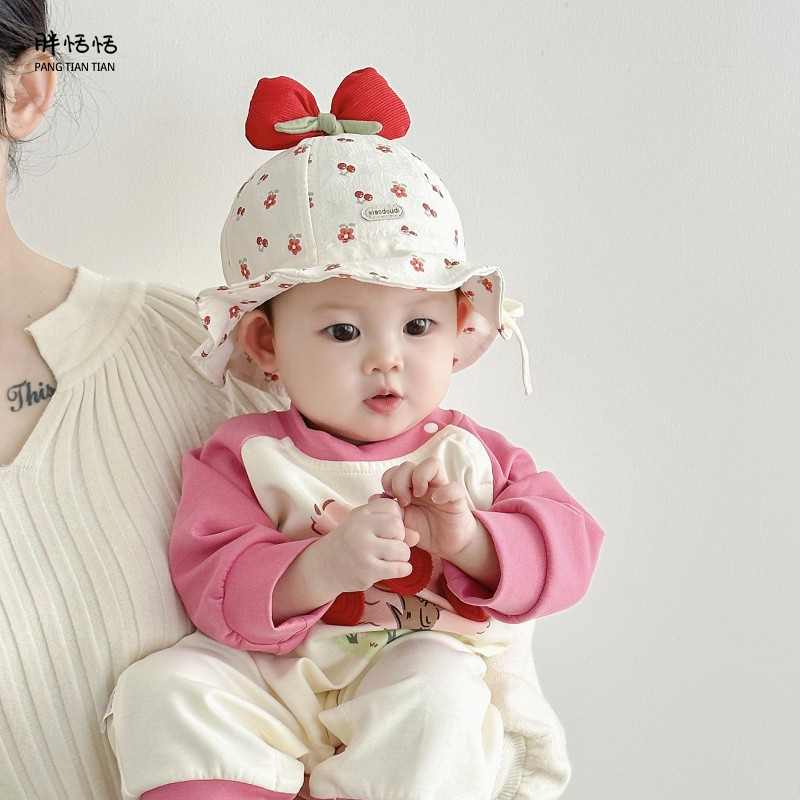 婴儿帽子春秋薄款洋气小月龄女童渔夫帽春季防晒宝宝可调节太阳帽