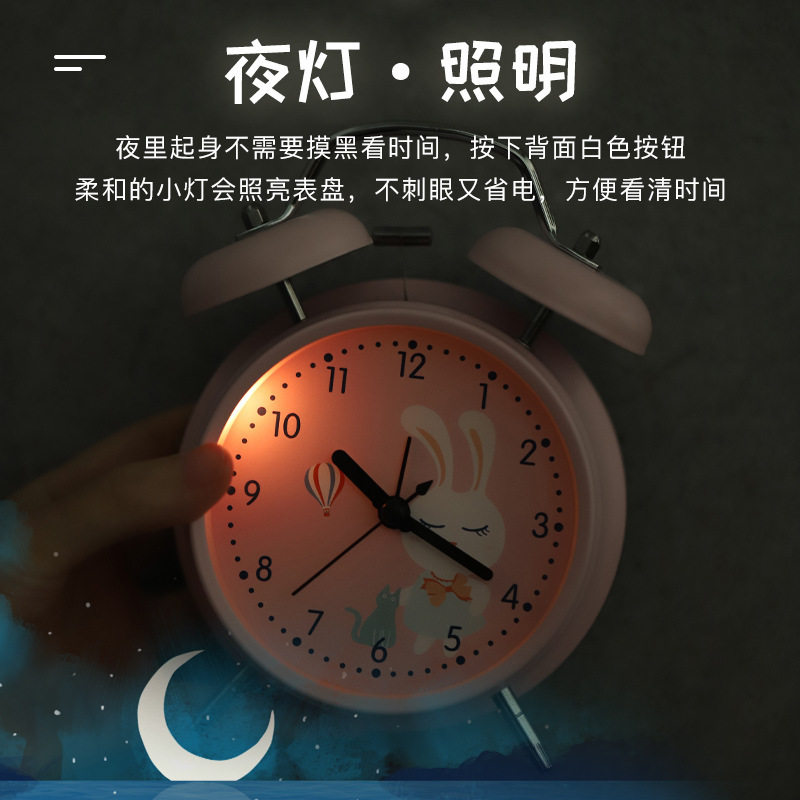 闹钟学生专用卡通可爱卧室时钟儿童男女孩静音创意夜光床头座钟表