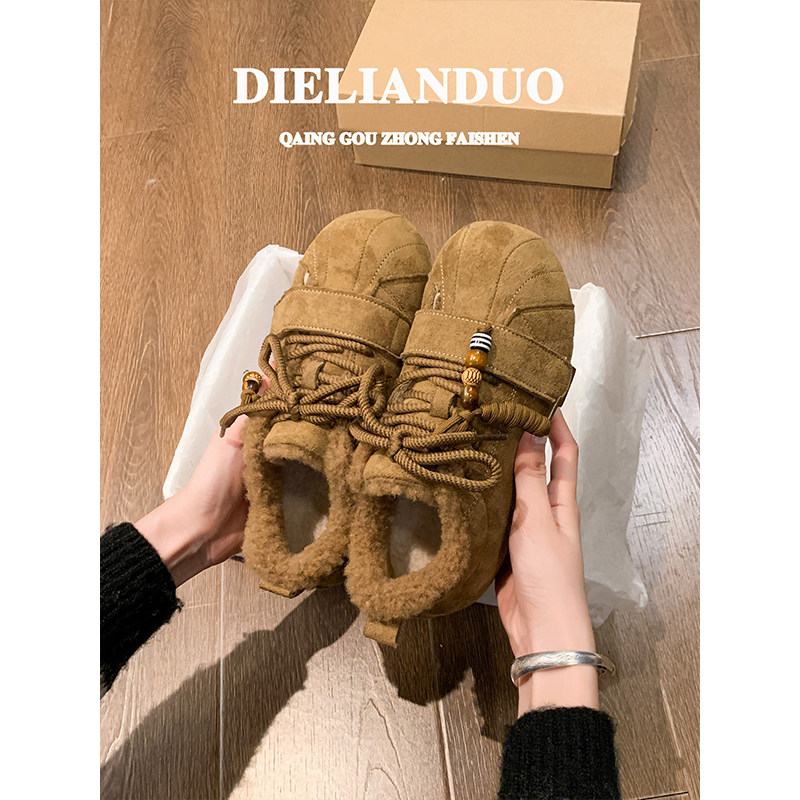 厚底勃肯鞋女款2025新款冬季爆款加绒加厚保暖雪地靴豆豆毛毛棉鞋