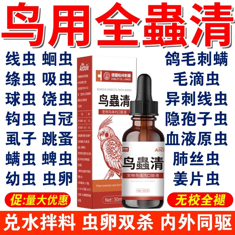 玄凤鹦鹉驱虫药体内体外驱虫画眉鸟清肠虫蛔虫肠道牡丹除虫打虫药