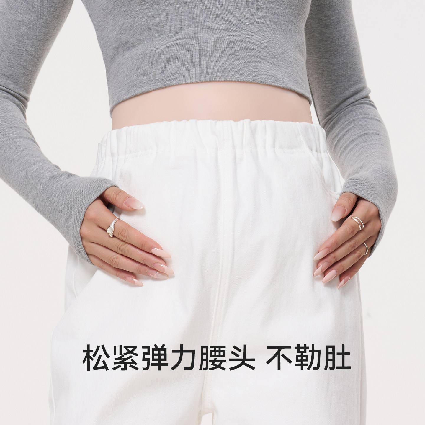 孕妇白色牛仔裤秋季外穿2025新款加厚无托腹高腰直筒长裤子秋冬装