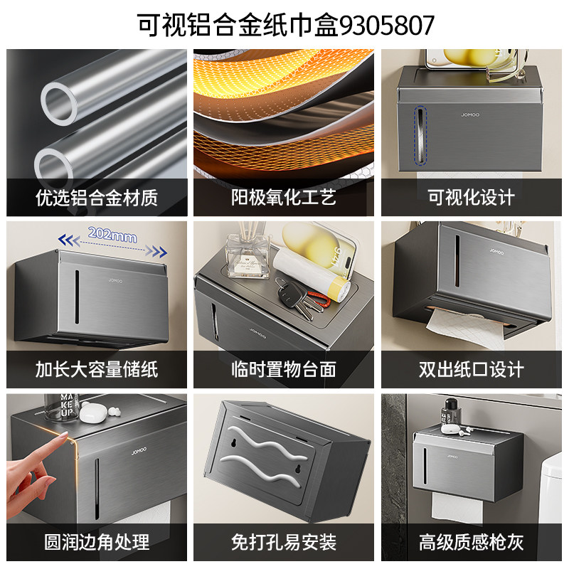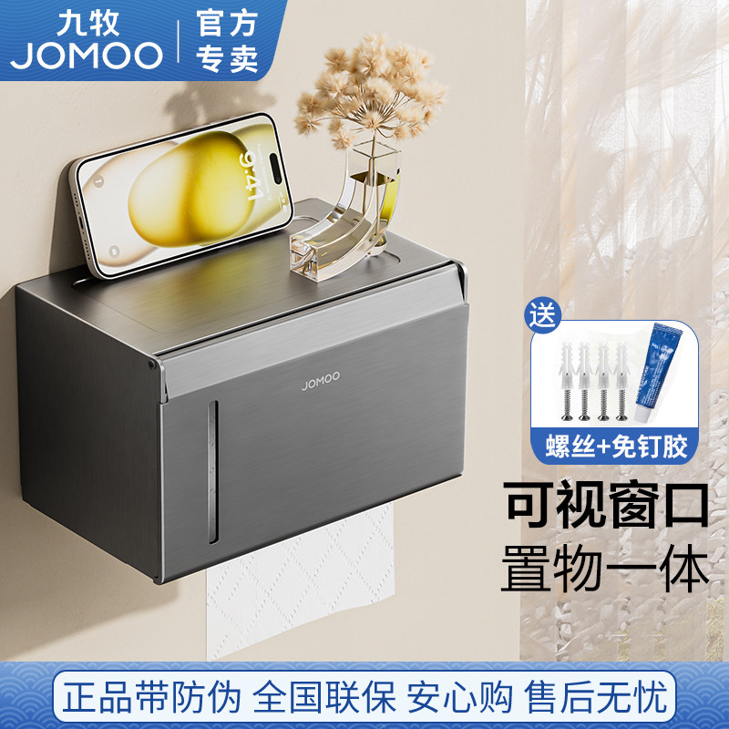 九牧枪灰太空铝厕所纸巾盒免打孔厕纸架子置物壁挂式抽纸盒卫生间
