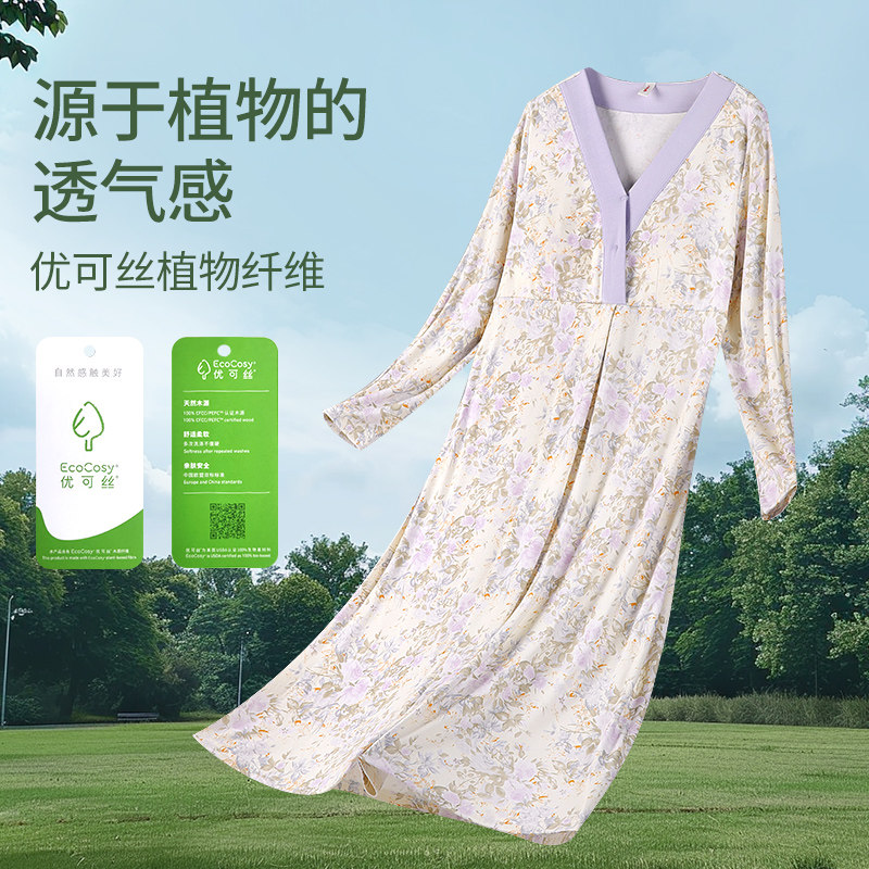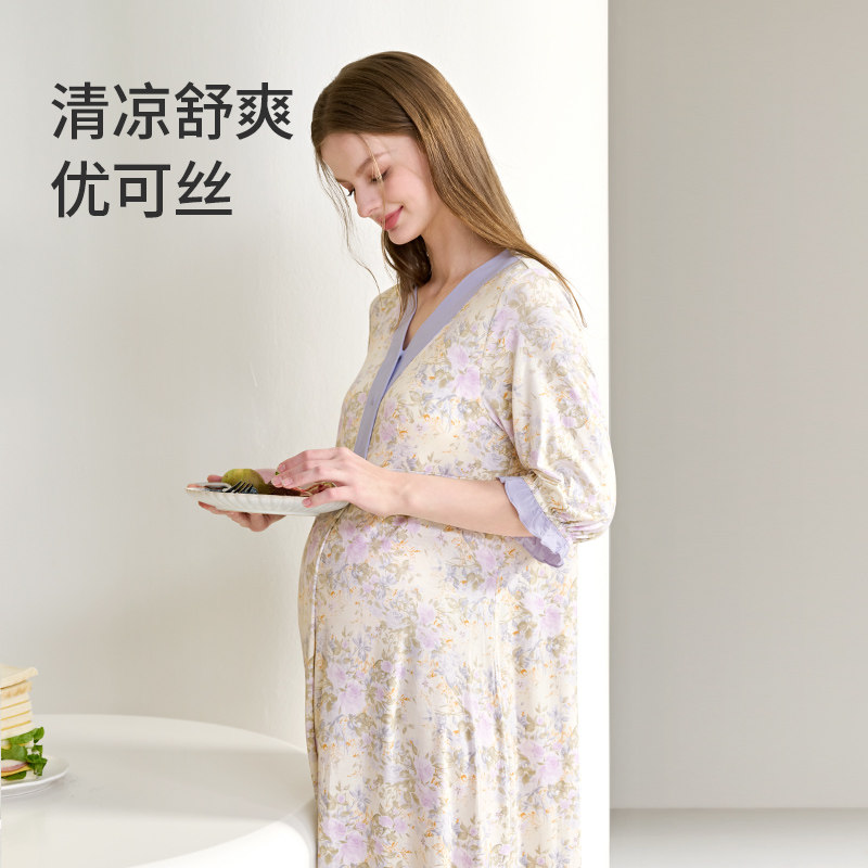 [透气优可丝!送胸垫]孕妇睡裙夏秋哺乳产后月子服产妇待产连衣裙