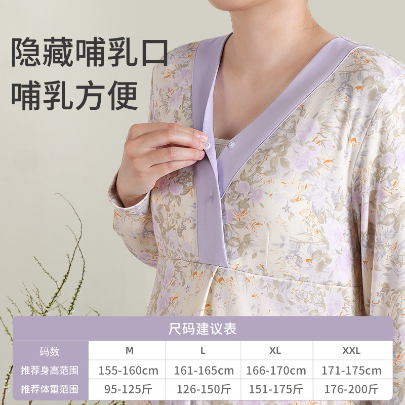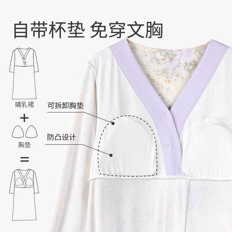 春秋纯棉带胸垫月子服医院待产裙产妇孕妇睡裙喂奶哺乳衣产前产后