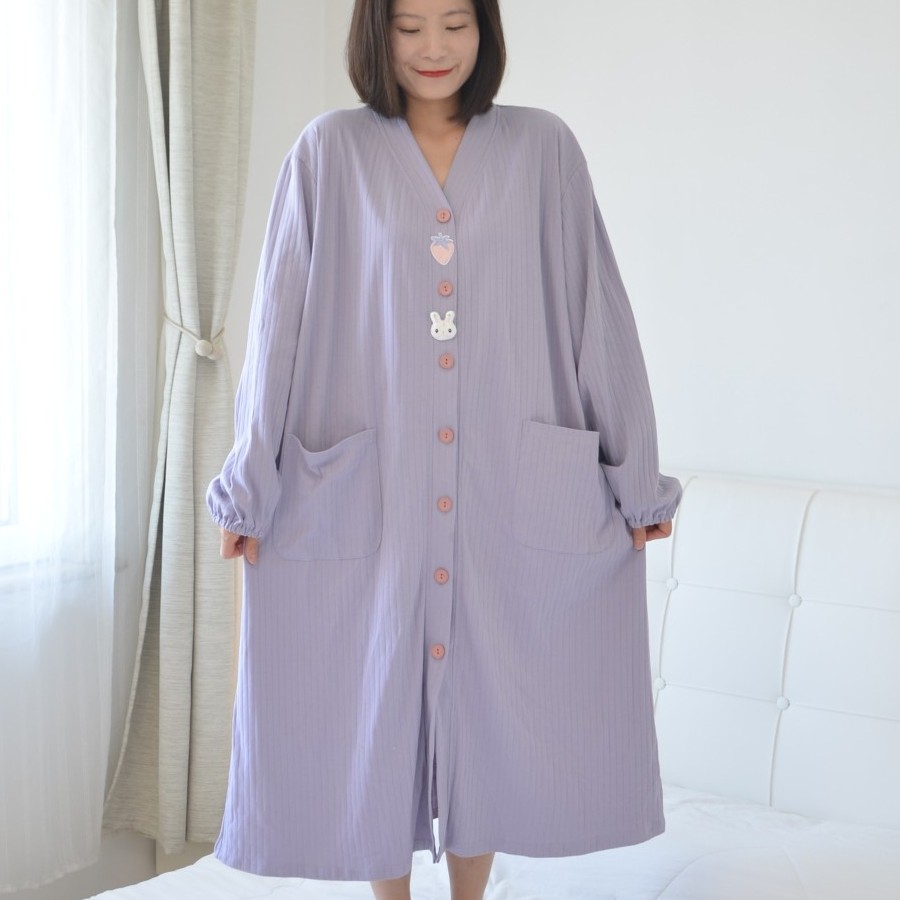 200斤卡通兔草莓睡裙女春秋加长加大码加厚纯棉开衫胖MM孕妇睡衣