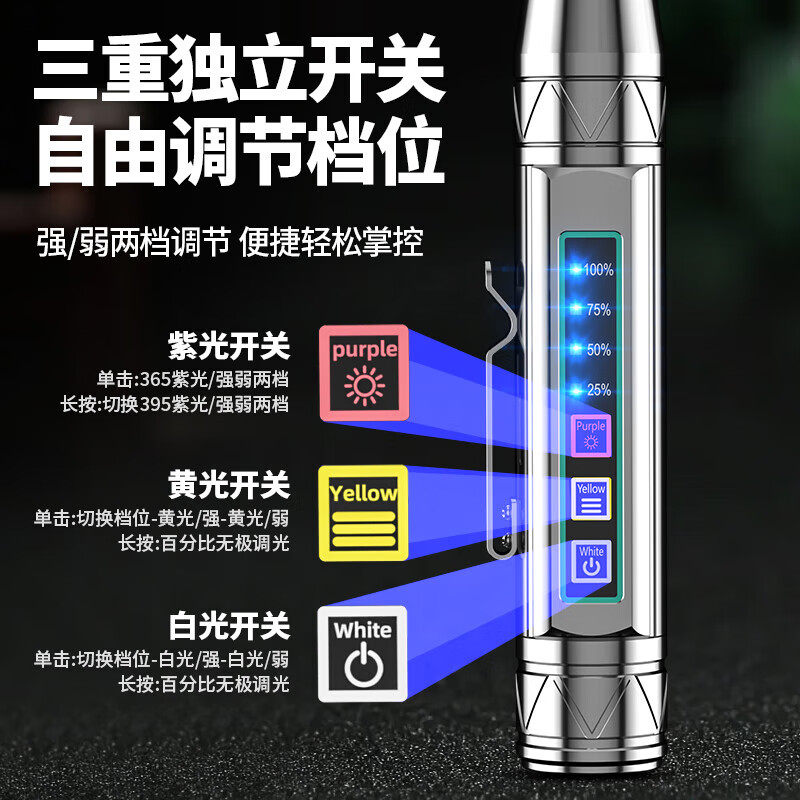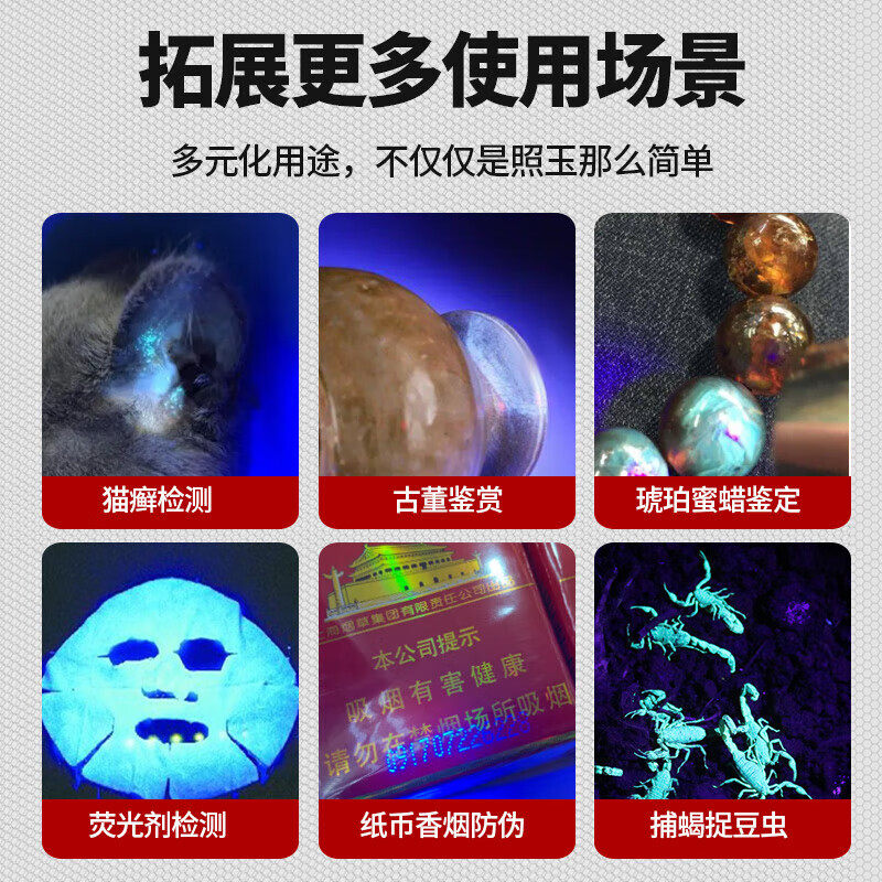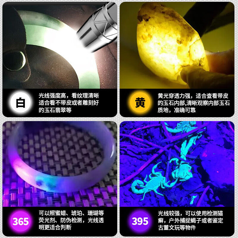 四光源照玉石鉴定专用手电筒强光看珠宝石翡翠文玩原石鉴别紫光灯