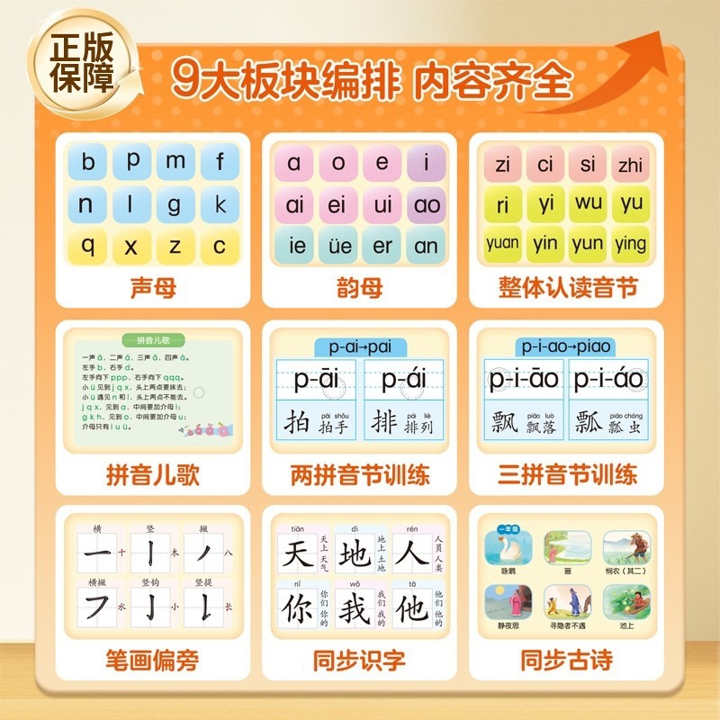 新版汉语拼音自然拼读训练点读发声书幼小衔接人教版 一年级早教启蒙新教材同步识字书幼儿认字古诗幼升小专项训练神器 有声学习机
