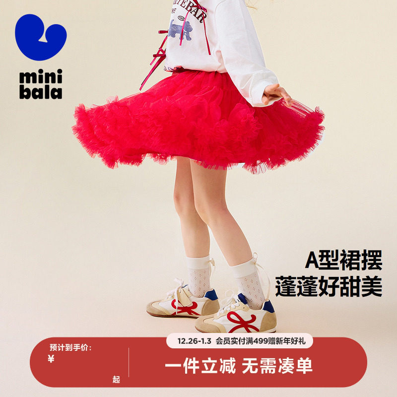 迷你巴拉巴拉女童公主裙儿童网纱蓬蓬裙百搭短裙亮tutu裙子半身裙