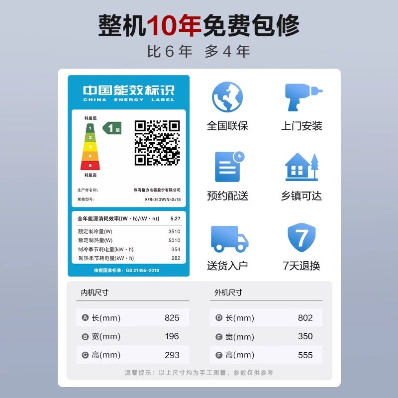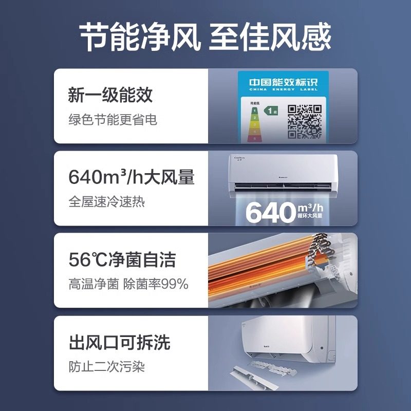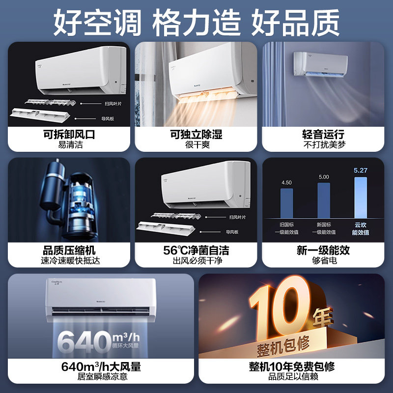 格力空调1.5匹壁挂式空调挂机卧室家用变频冷暖新一级能效云欢