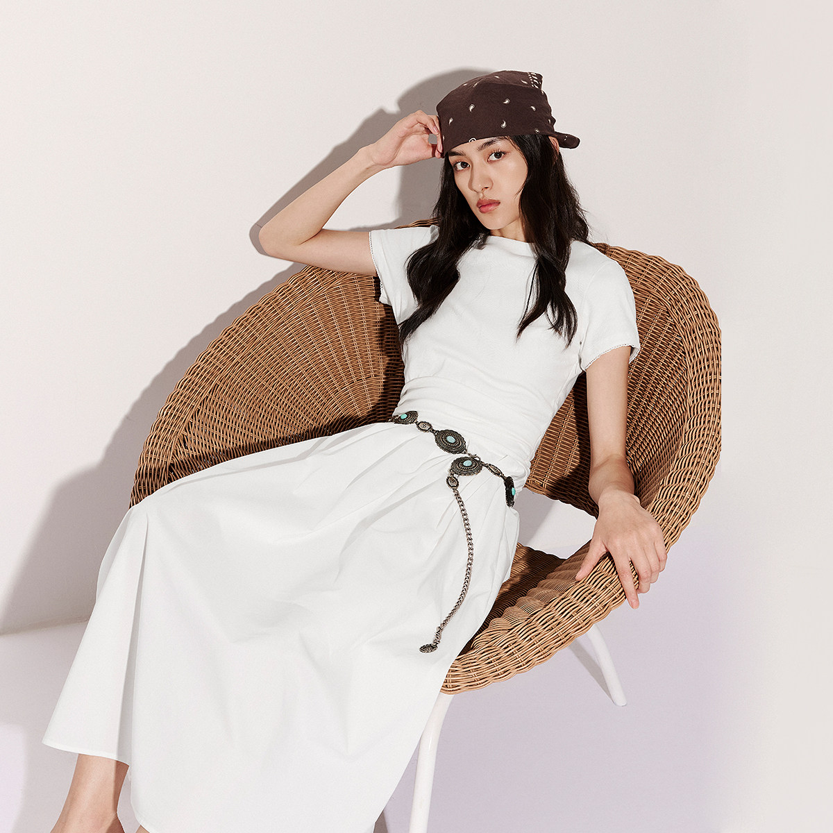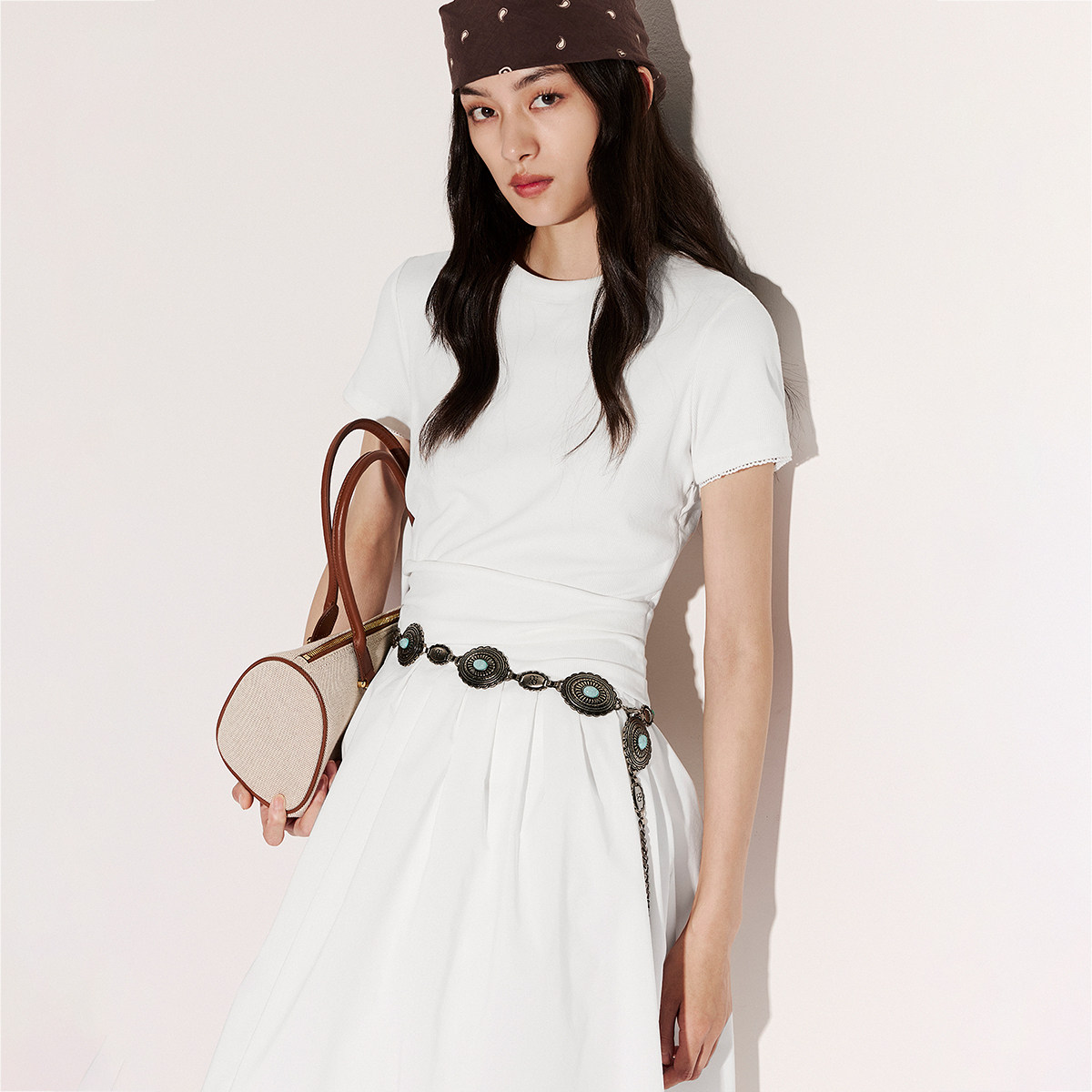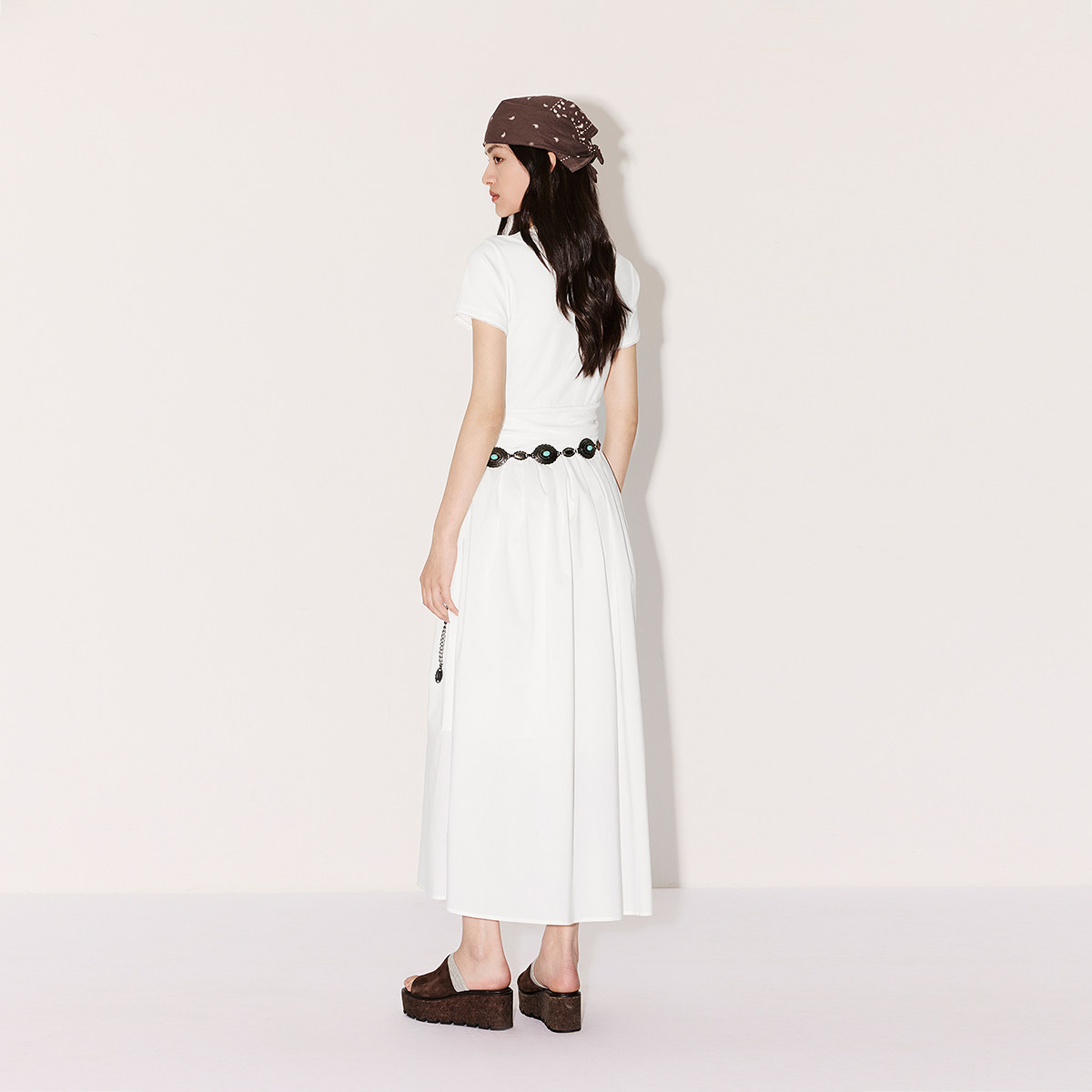 收腰褶皱效果,气质感长裙