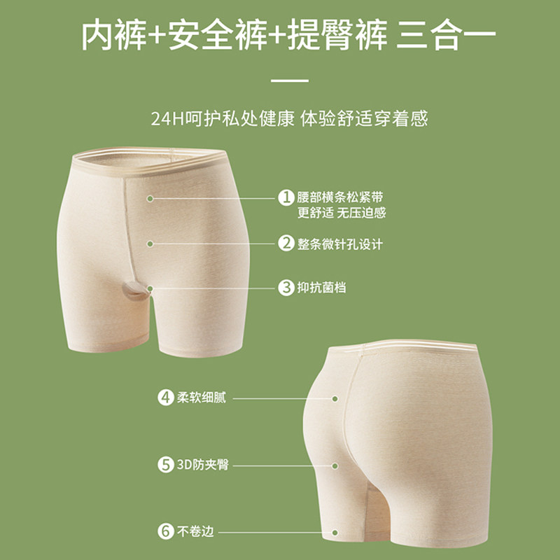 3条装彩棉无染色女士安全裤防走光健康抗菌夏季透气二合一打底裤