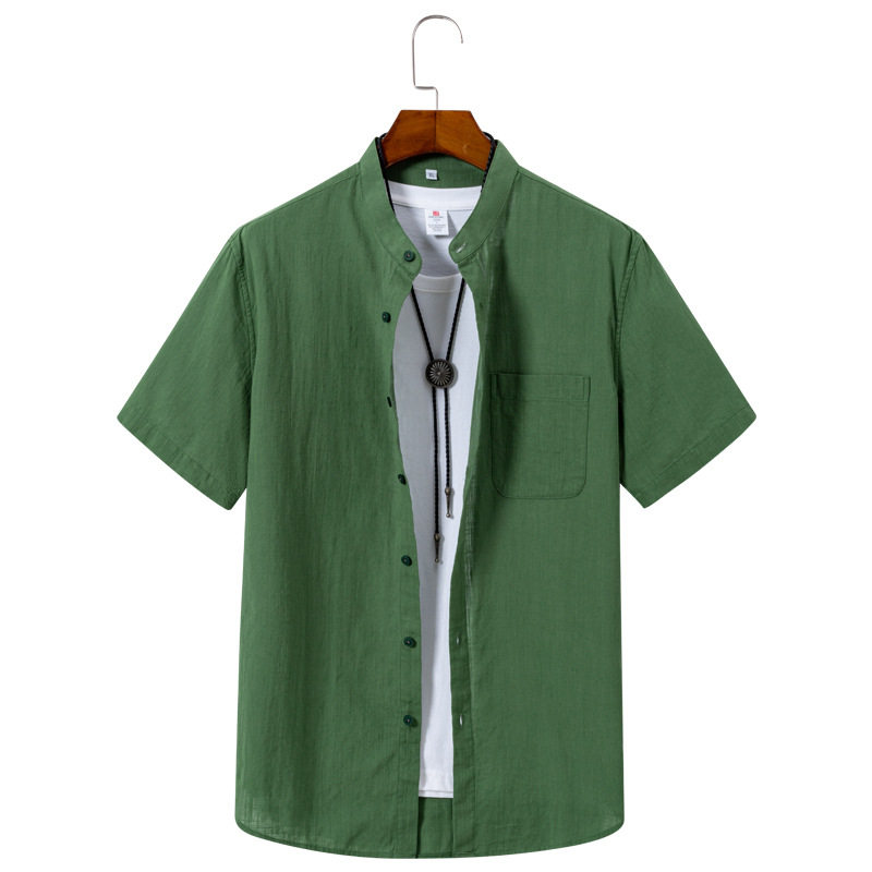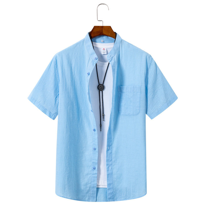 纯色短袖衬衫男士夏季纯棉亚麻竹节商务休闲衬衣韩版免烫帅气男装