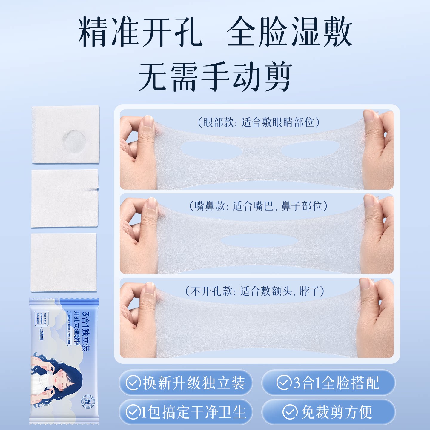 三合一湿敷棉敷脸专用敷面膜可拉伸多功能无菌官方正品化妆棉亲肤