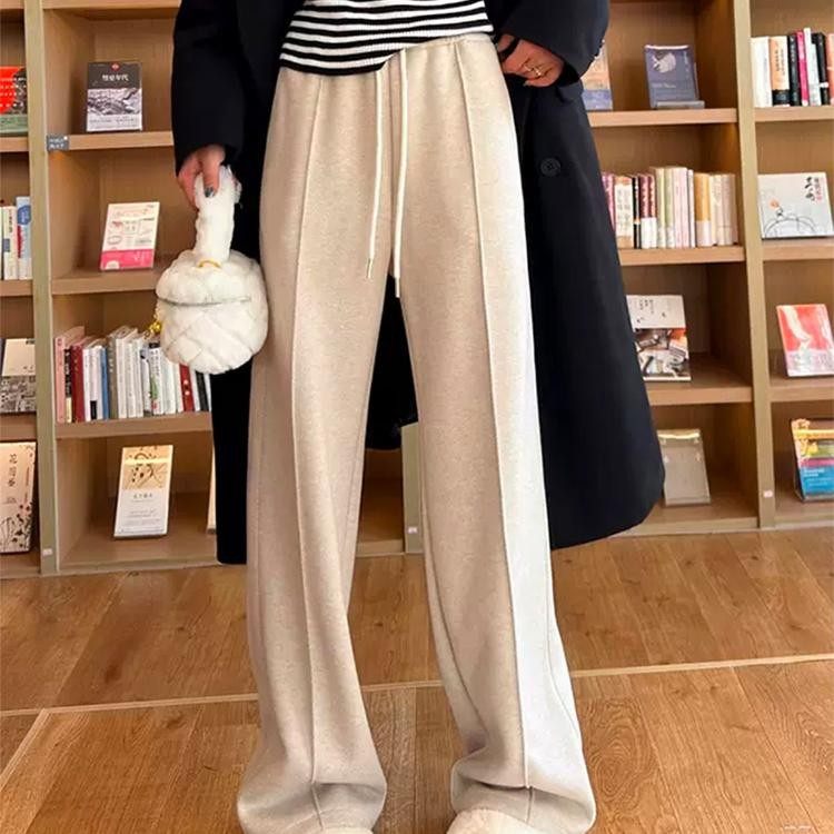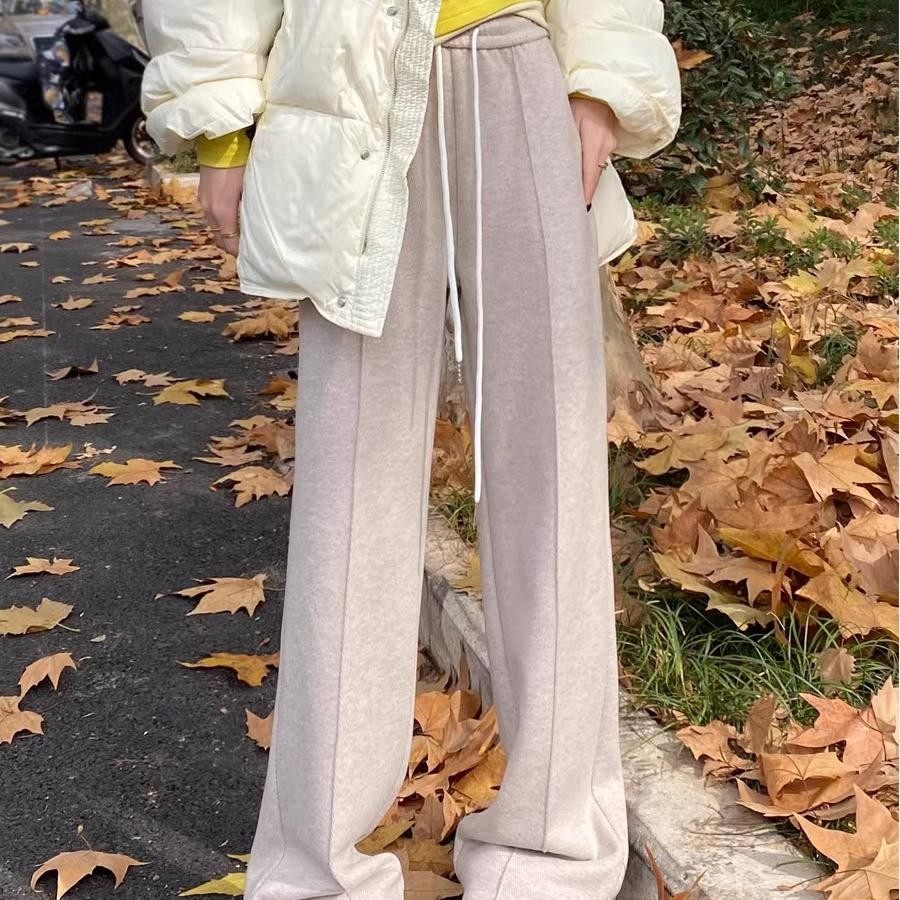糯米裤女羊羔绒垂坠感软糯加绒加厚秋冬韩系慵懒松弛感阔腿裤TB