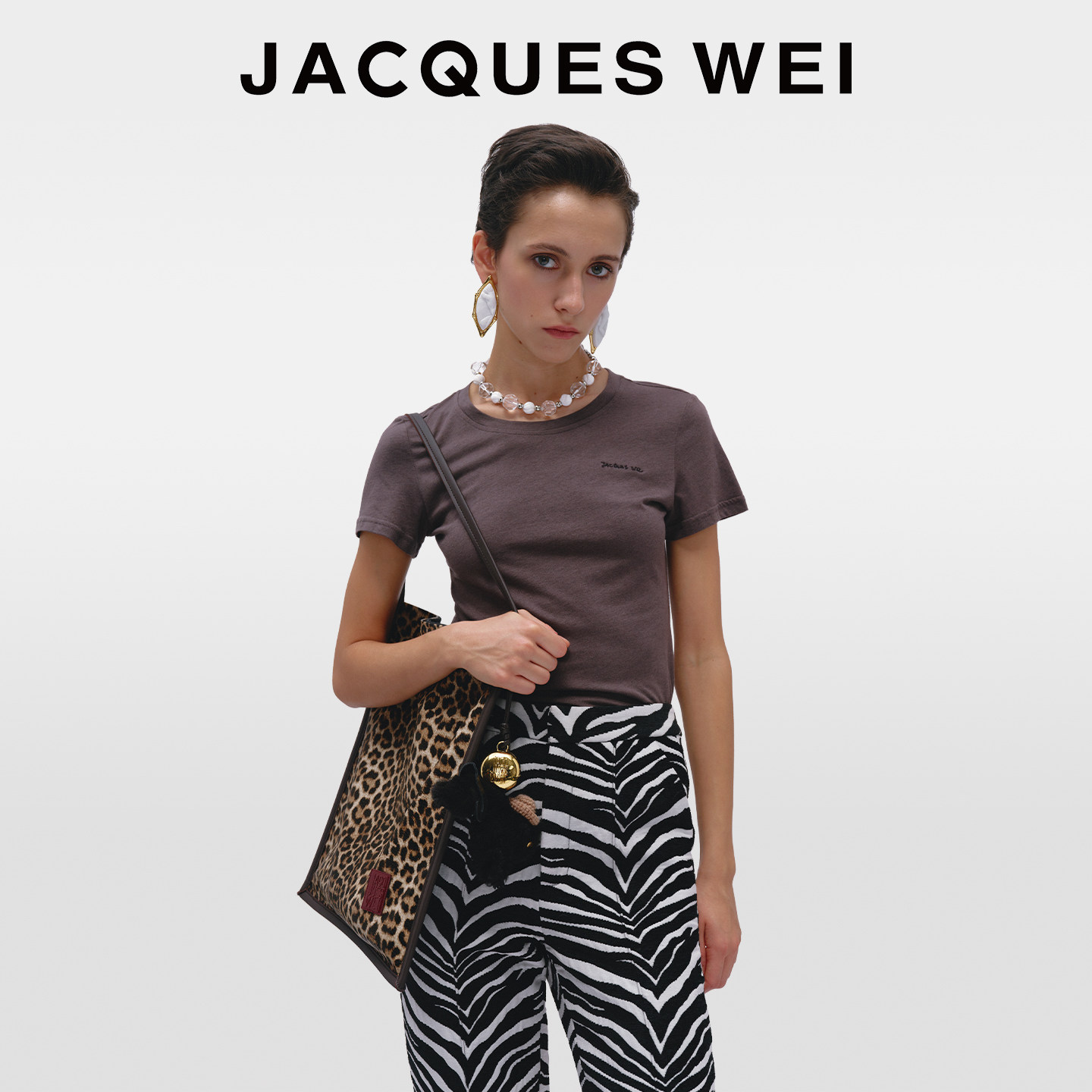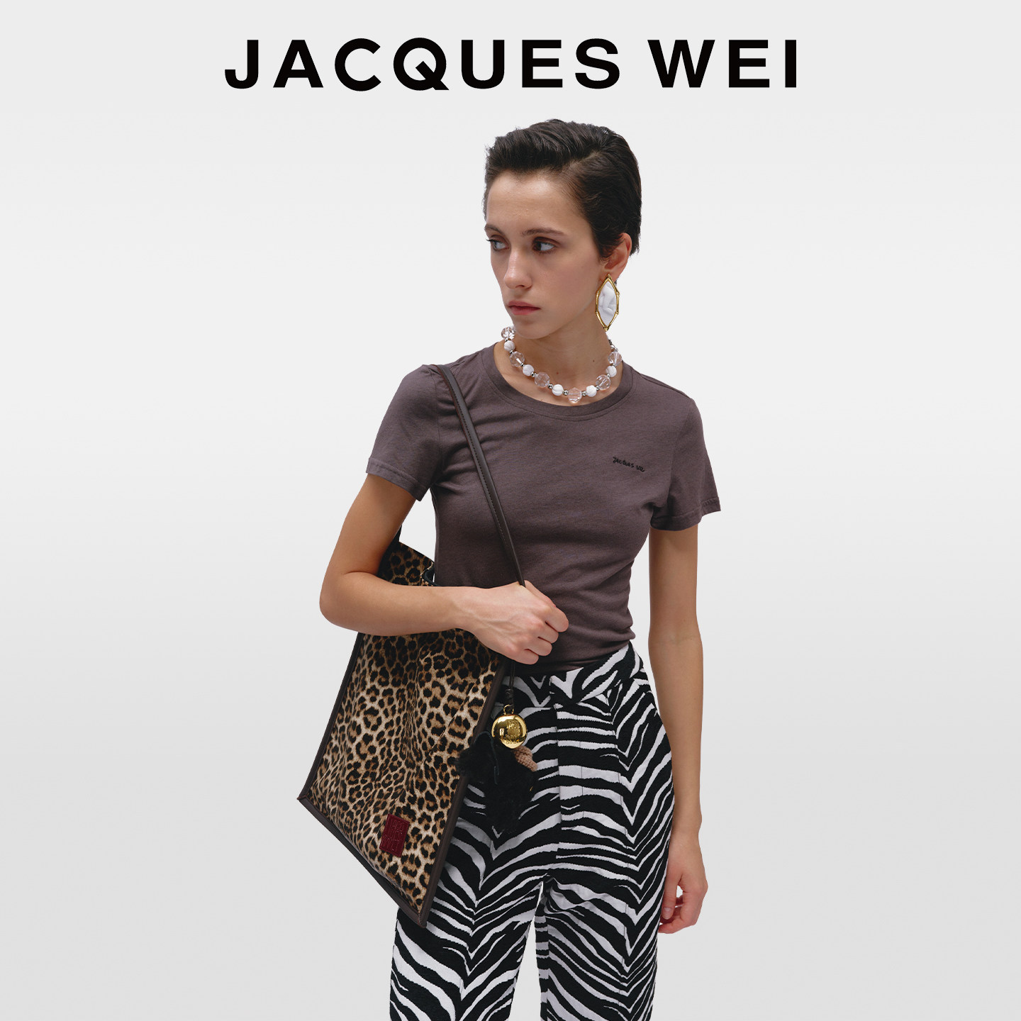 JACQUES WEI 皮草小马挂件豹纹包帆布包女2025新款上班通勤高级感