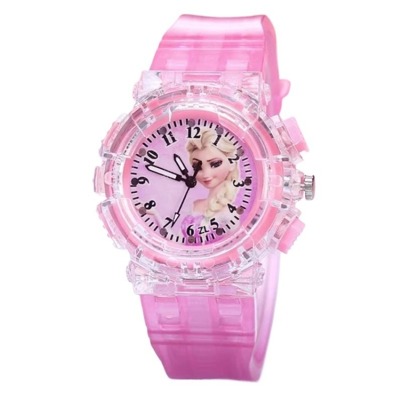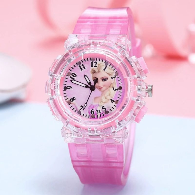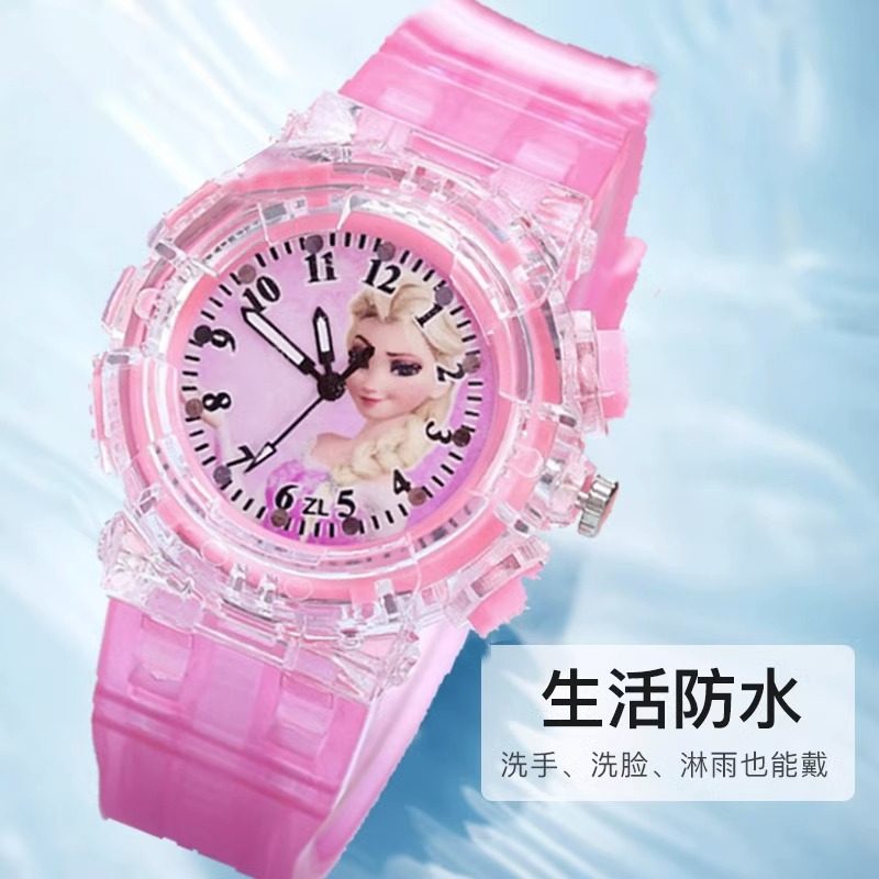 儿童玩具手表女孩冰雪奇缘艾莎发光手表卡通爱莎公主手表女童时间