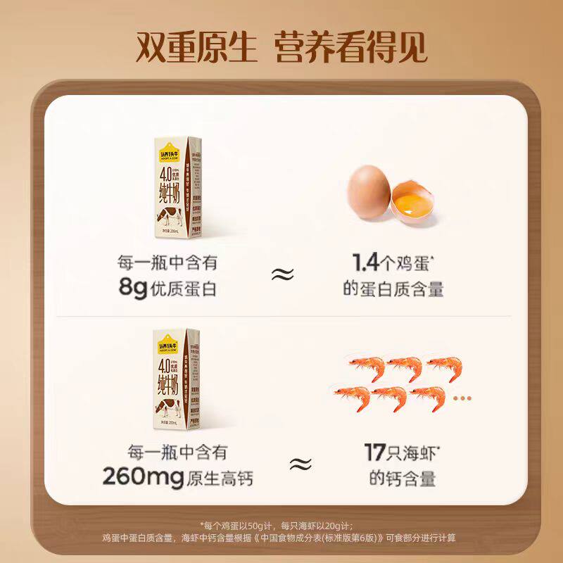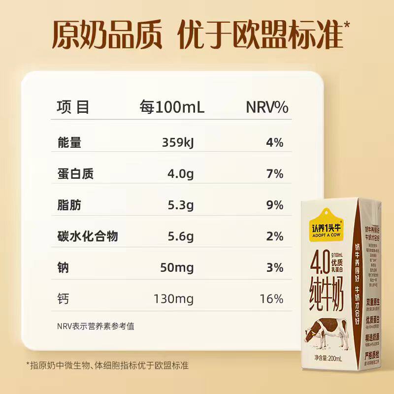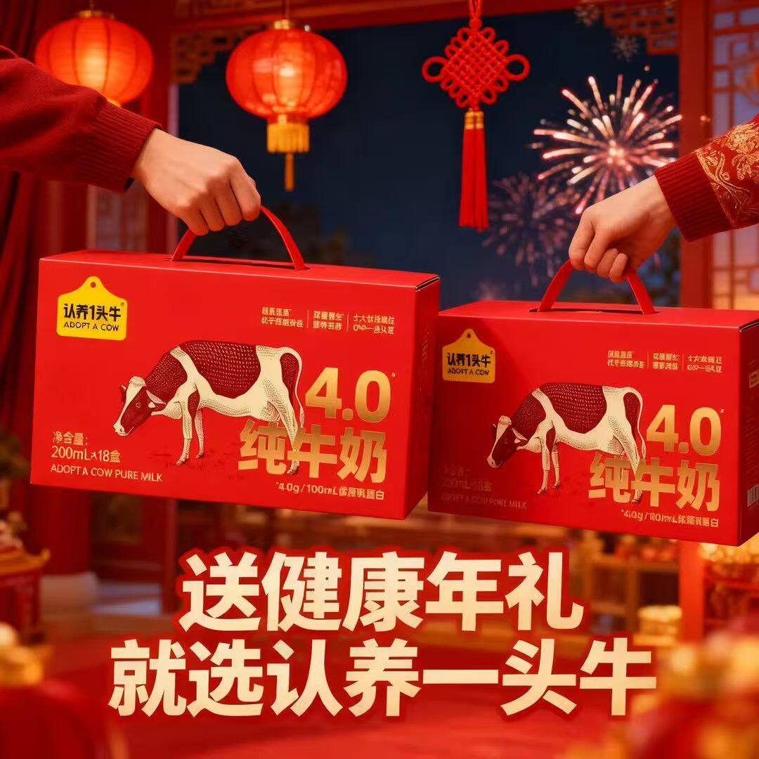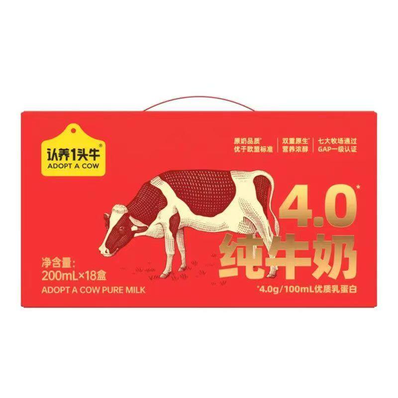 新年礼盒认养一头牛纯牛奶4.8g蛋白200ml*18盒节日年货送礼12月