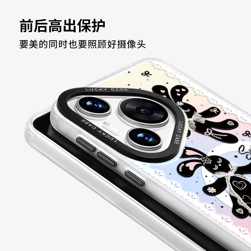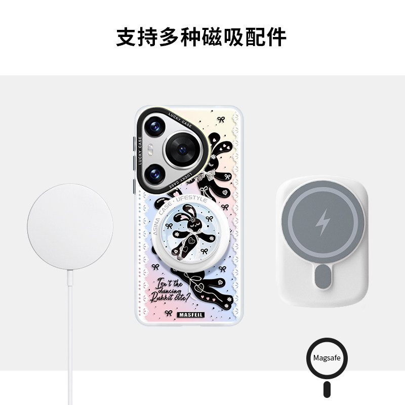 MASFEIL × 蕾丝兔子适用华为Pura80Pro手机壳p60新款磁吸带支架p40pro+保护套可爱简约p70全包女高级感Ultra