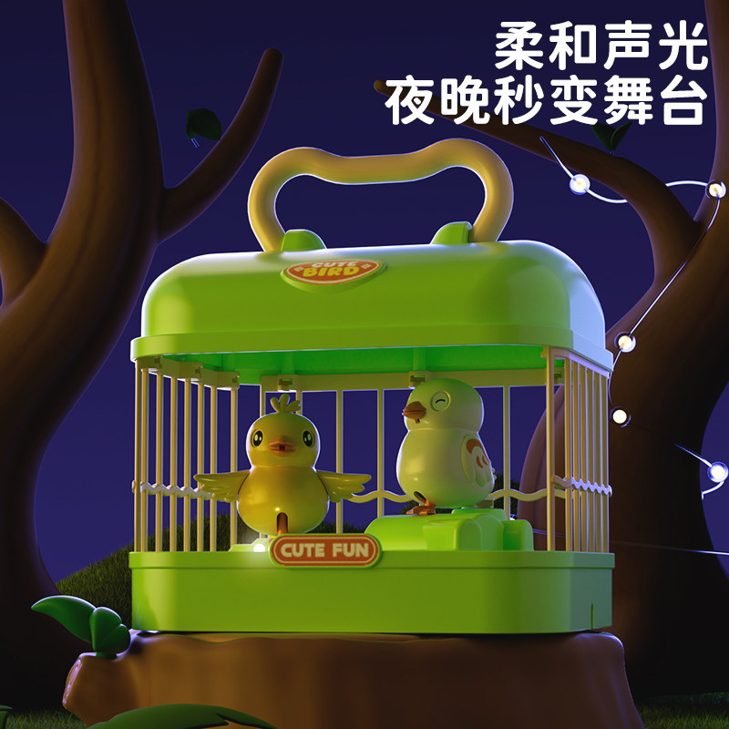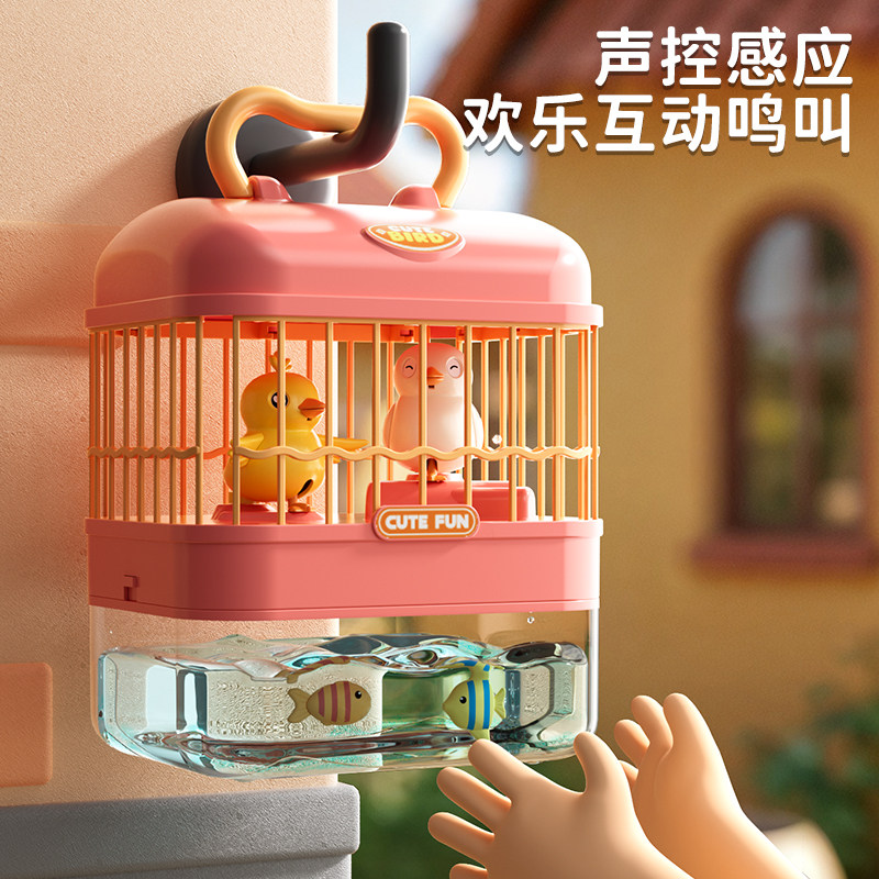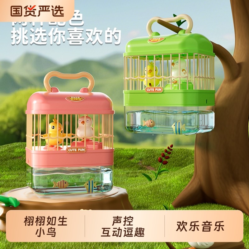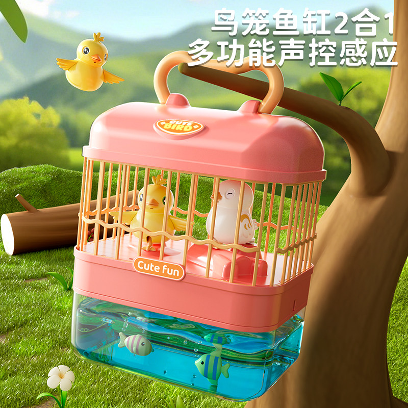 电动声控感应鸟笼鱼缸二合一学说话小鸟儿童音乐灯光宝宝玩具礼物