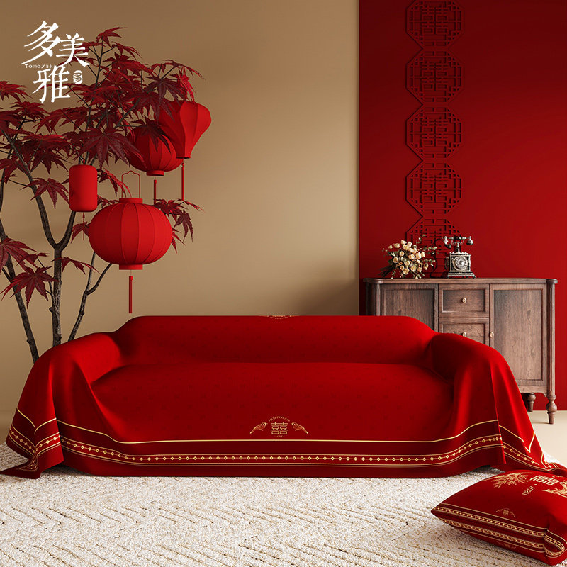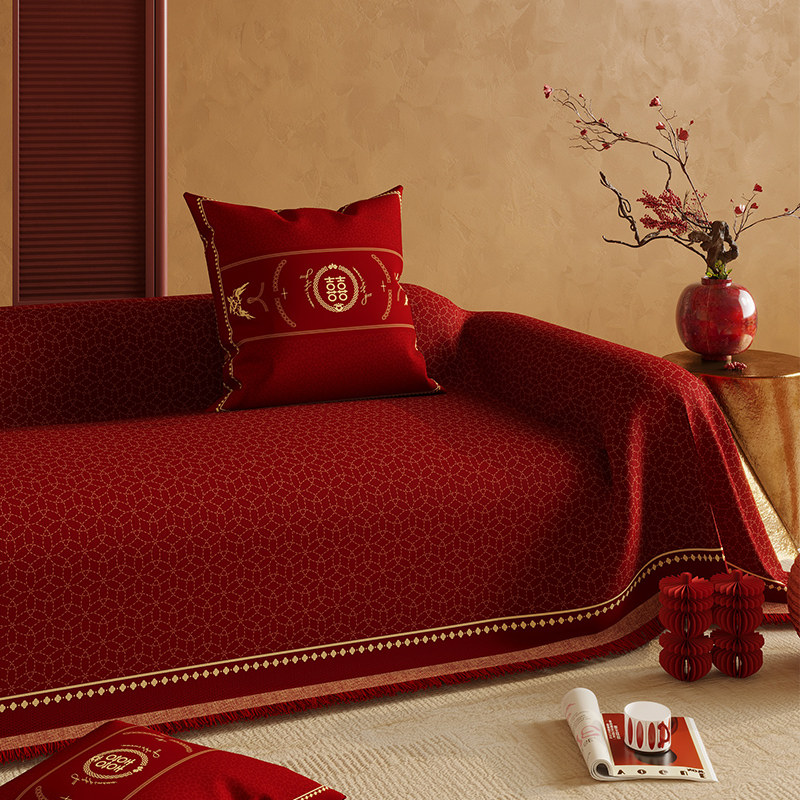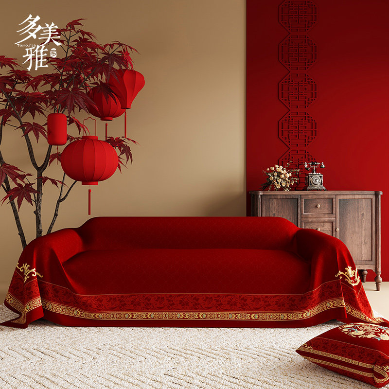 结婚沙发盖布四季通用中式高级感沙发巾喜庆红色防滑套罩全包氛围