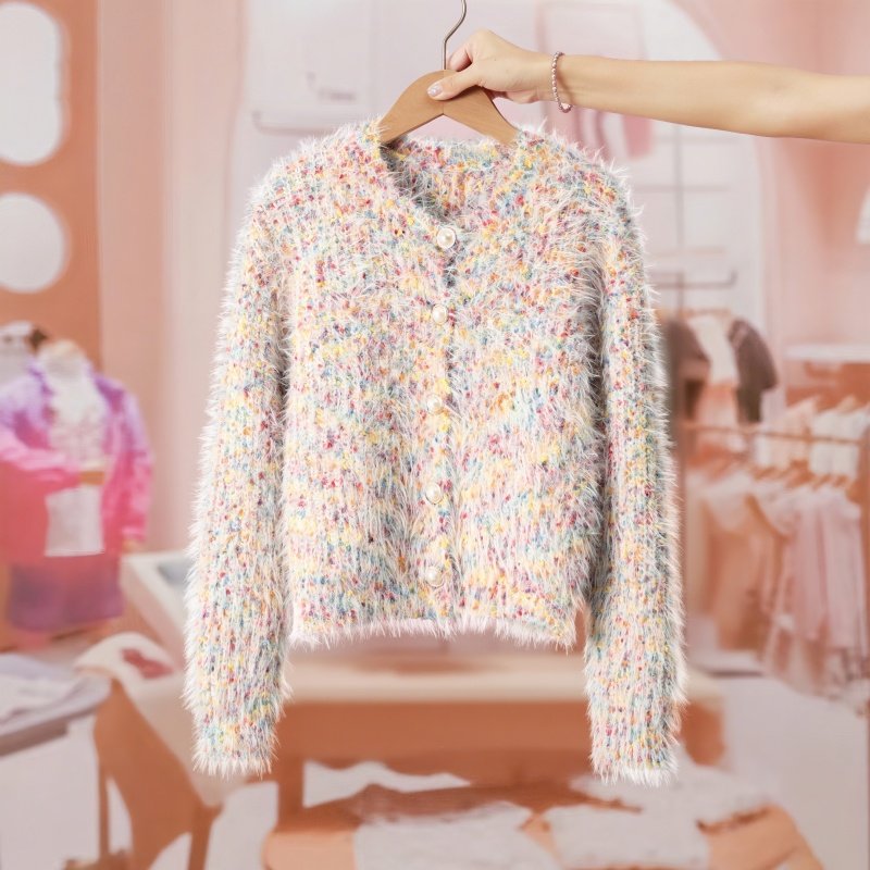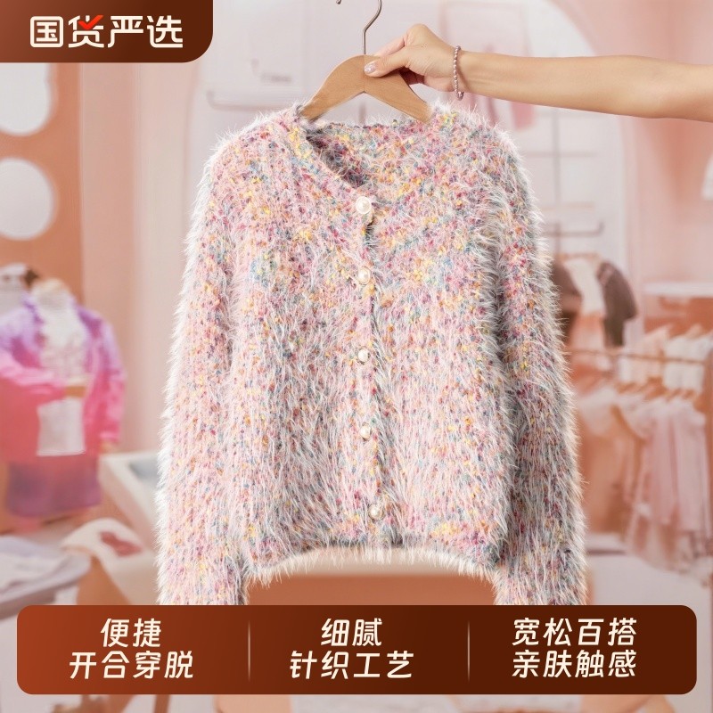 女童装秋冬装开衫毛衣2025年新款儿童外穿上衣仿水貂绒中大童外套