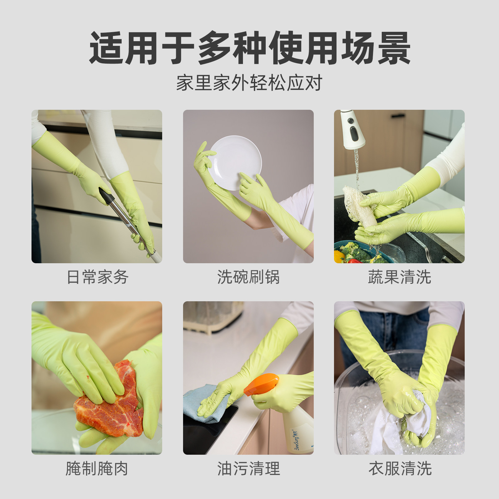秉秀2025新品牛油果护肤加长丁腈手套14英寸加厚家务手套医护级