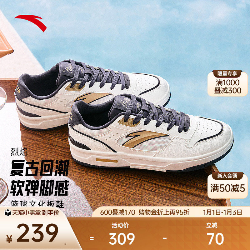 安踏烈焰丨潮流低帮板鞋男冬季百搭平底小白运动鞋王一博同款