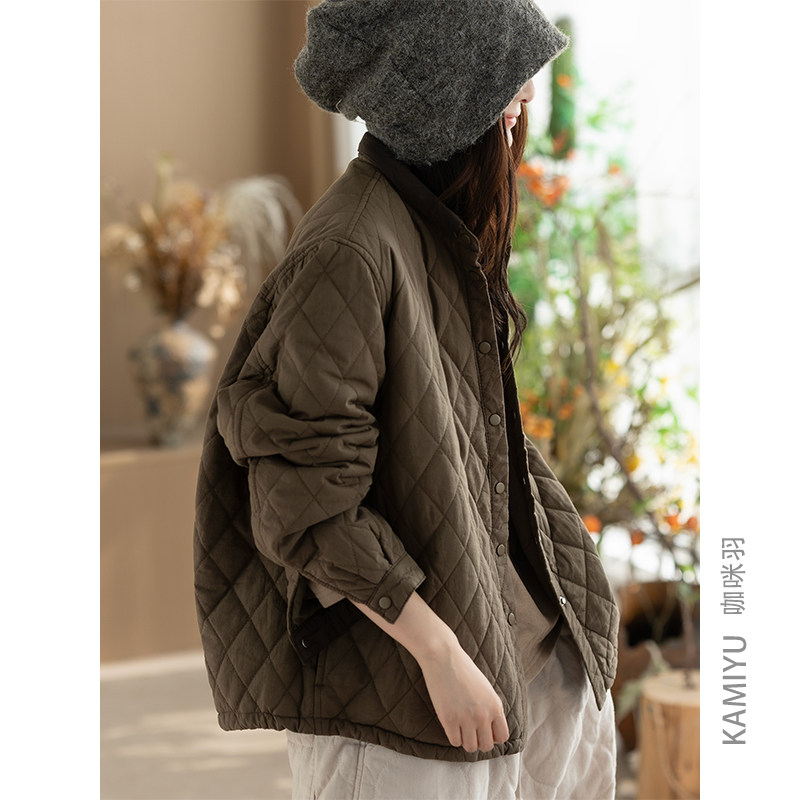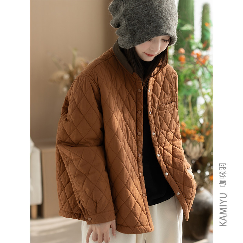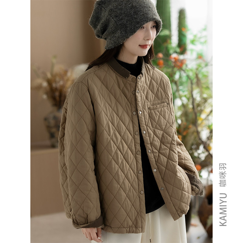 咖咪羽新款冬装棉袄时尚韩系菱形格外套轻薄小棉服休闲立领外套女