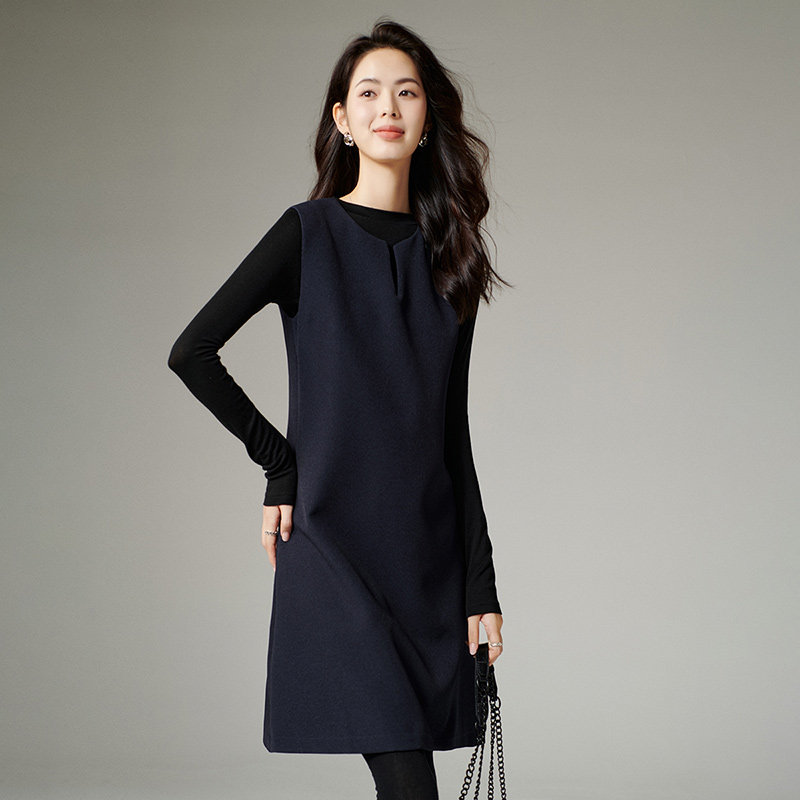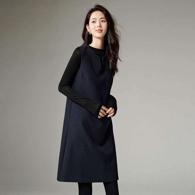 晚白2025年秋冬新款小个子气质背心裙子直筒斜纹高级感连衣裙女