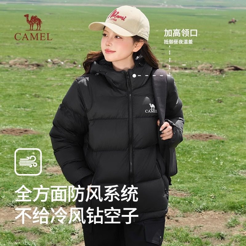 骆驼火山羽绒服2025秋冬女装保暖休闲连帽加厚外短款面包服男