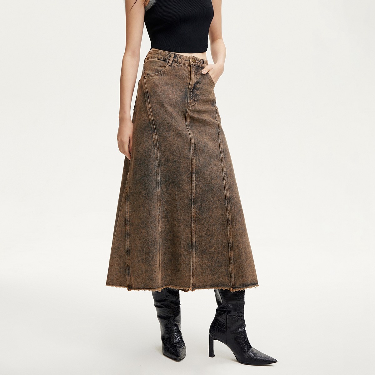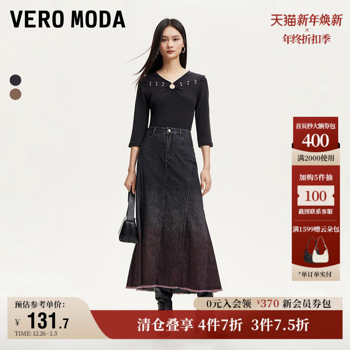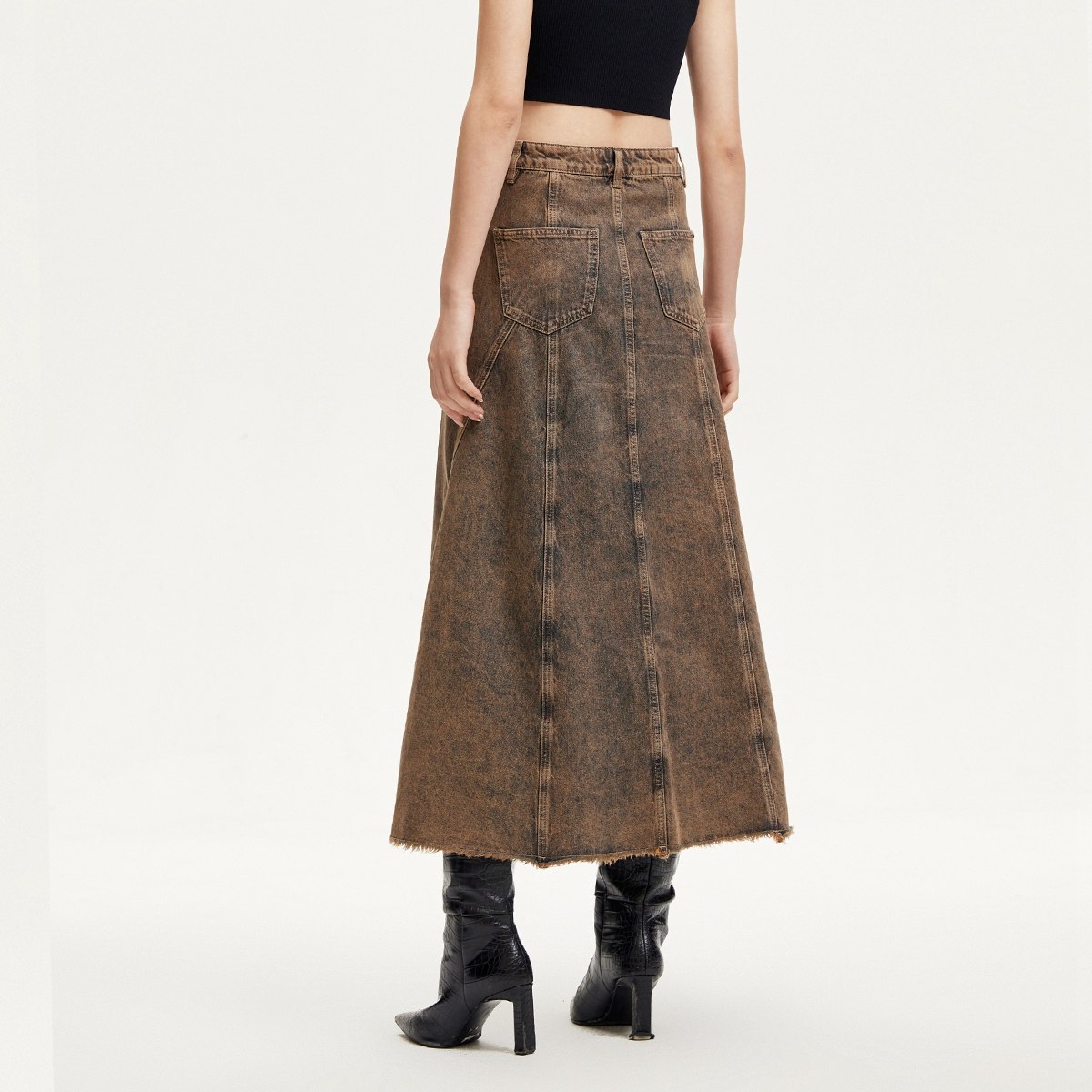 Vero Moda奥莱牛仔半身裙秋冬新款A版磨毛边高腰扎染时尚百搭流行