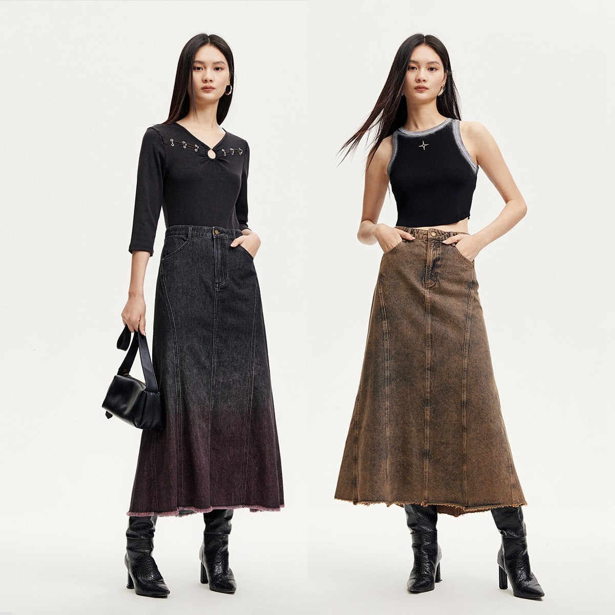 高腰A摆鱼尾裙,立体拼接剪裁,显高显瘦;