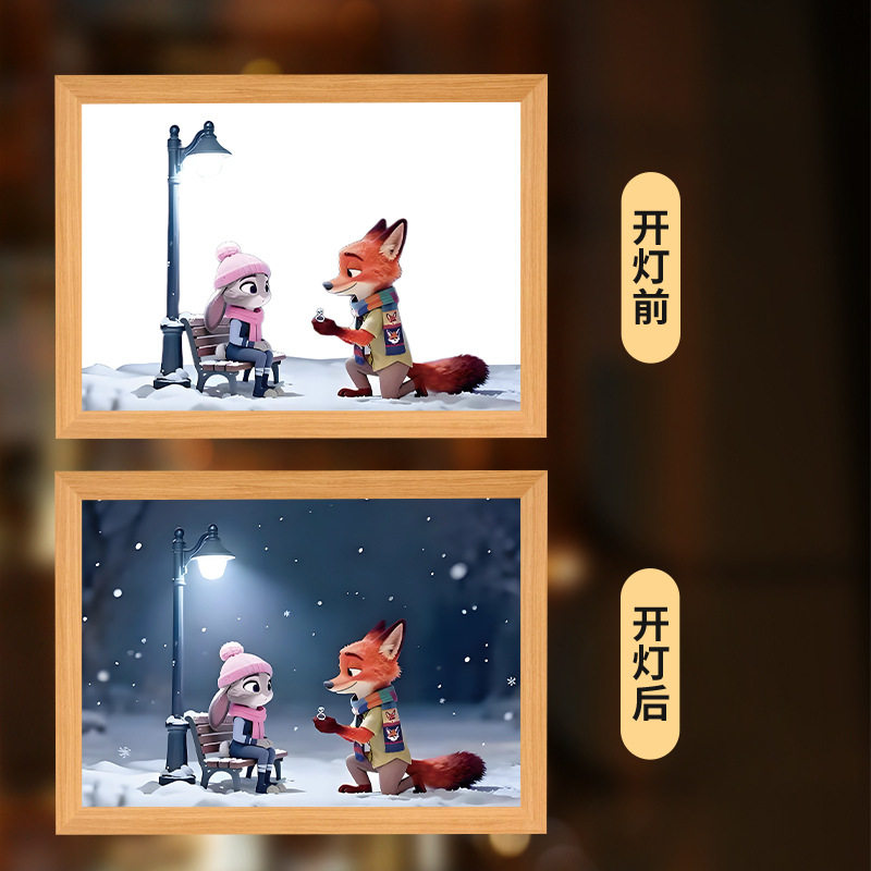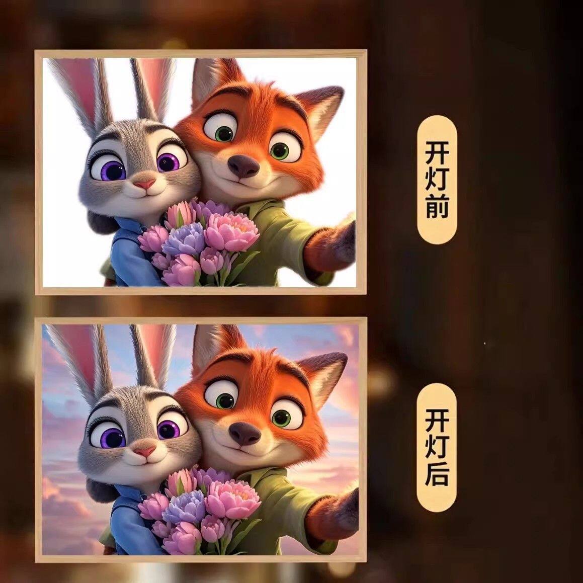 尼克和朱迪氛围感灯光画疯狂动物城夜晚桌面相框摆台小夜灯装饰画