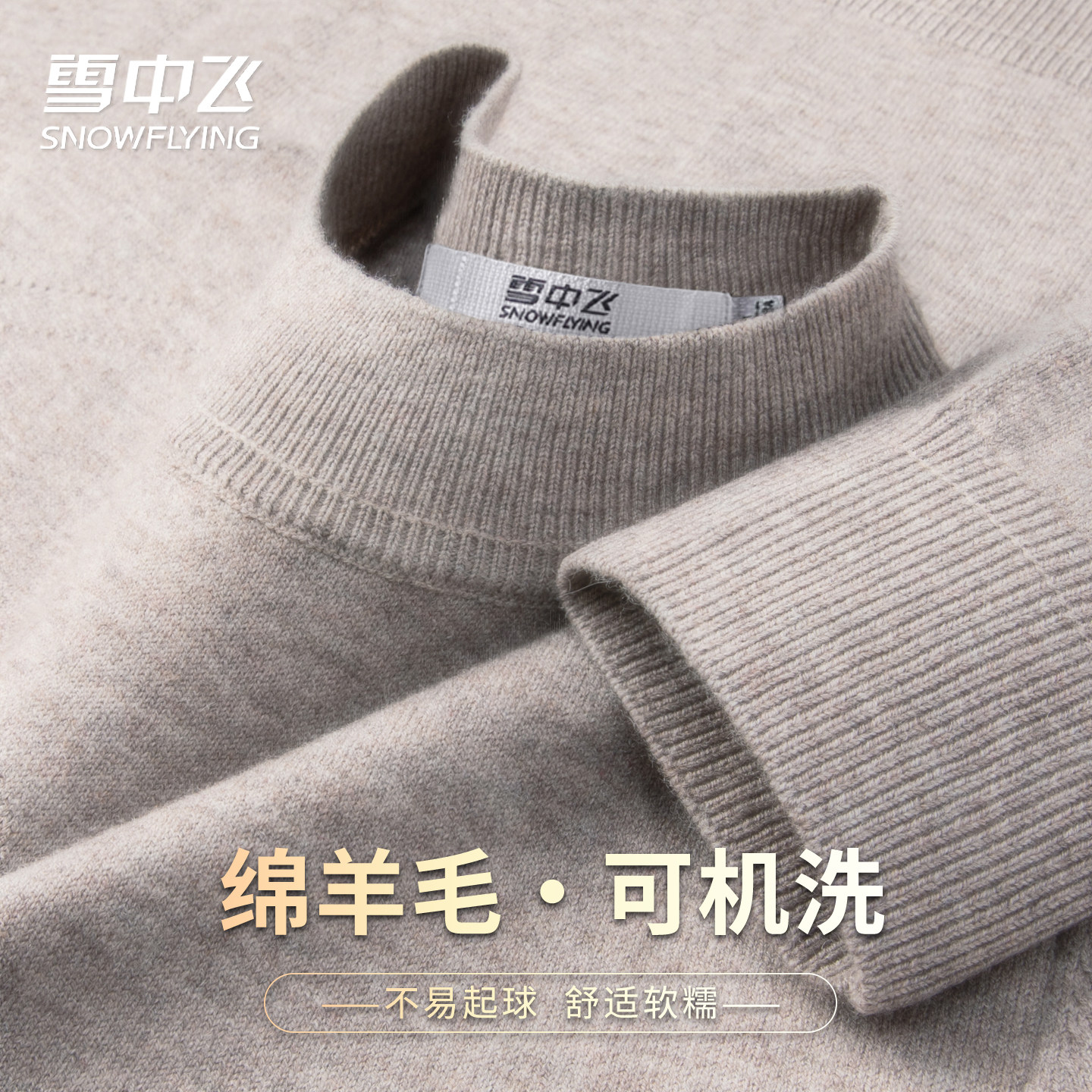 雪中飞25年秋冬【绵羊毛·可机洗】纯色舒适休闲保暖男士羊毛衫W